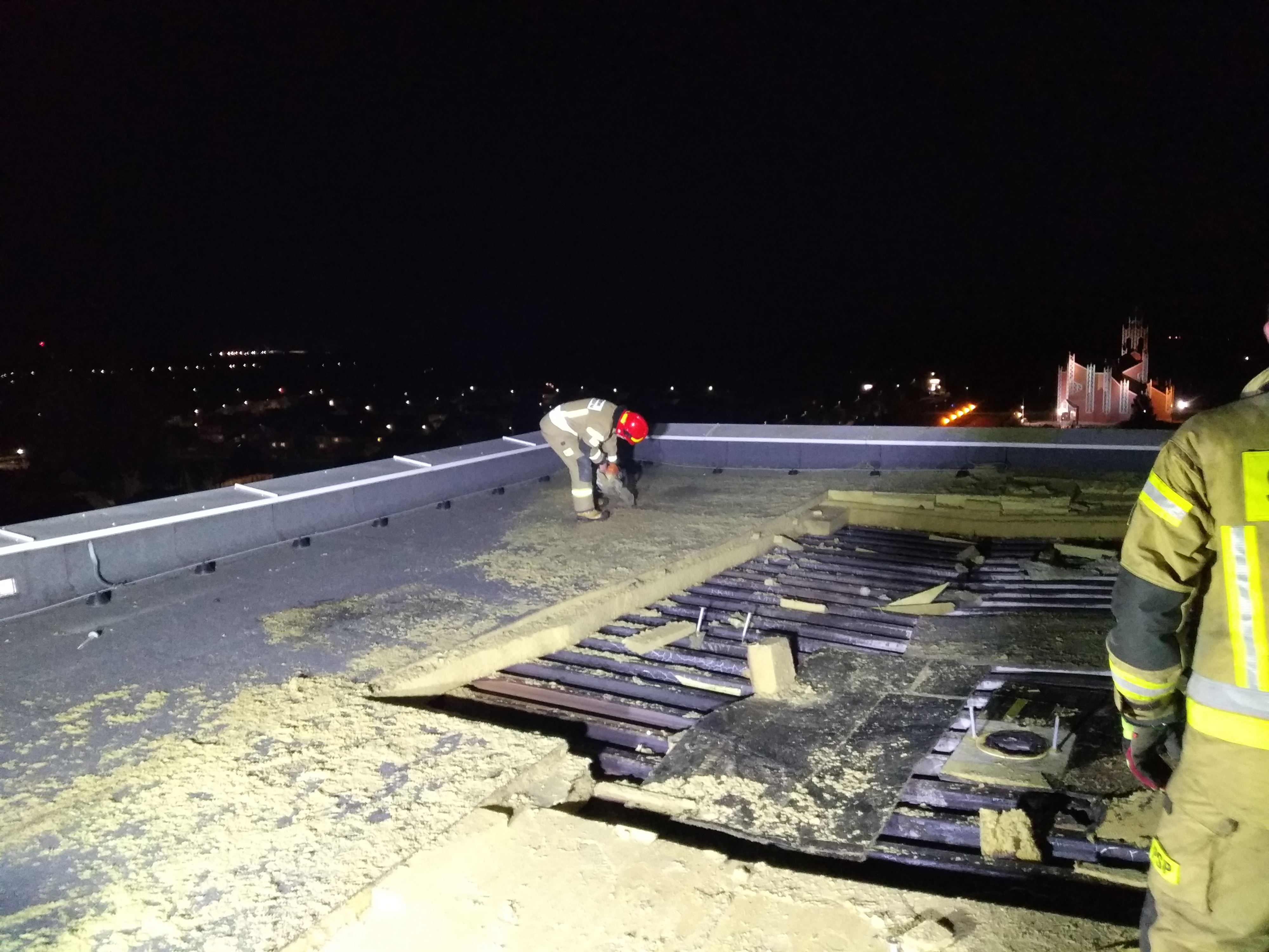 W dalszej fazie działania zastępów straży pożarnej polegały na rozbiórce nadpalonych elementów pokrycia ścian i dachu oraz dogaszaniu wykrytych przy użyciu kamery termowizyjnej zarzewi ognia.