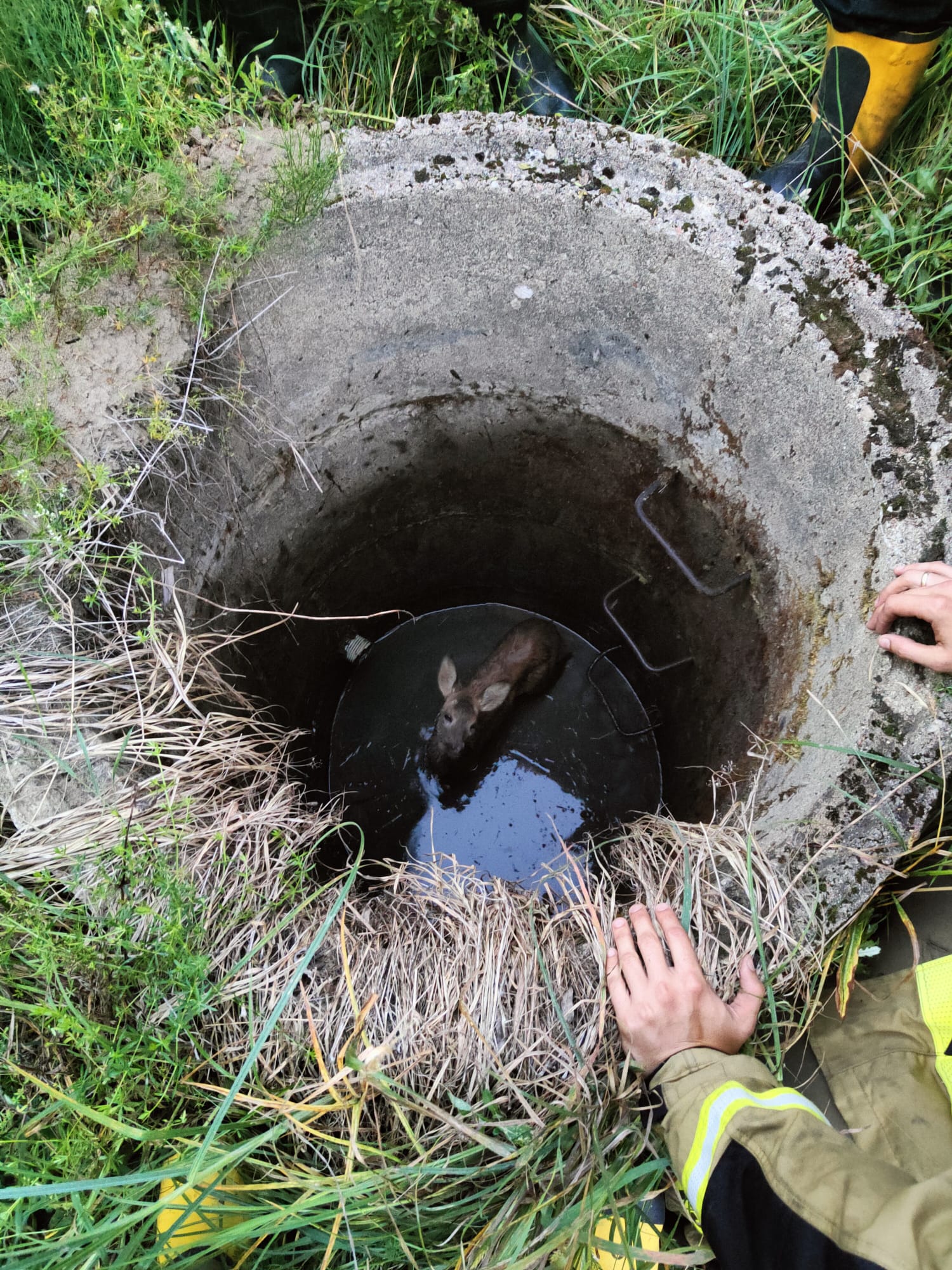 Po przybyciu na miejsce zdarzenia strażacy ustalili, że sarna wpadła do nie zabezpieczonej studni o głębokości około 2 m. Na szczęście w studni był niski poziom wody.