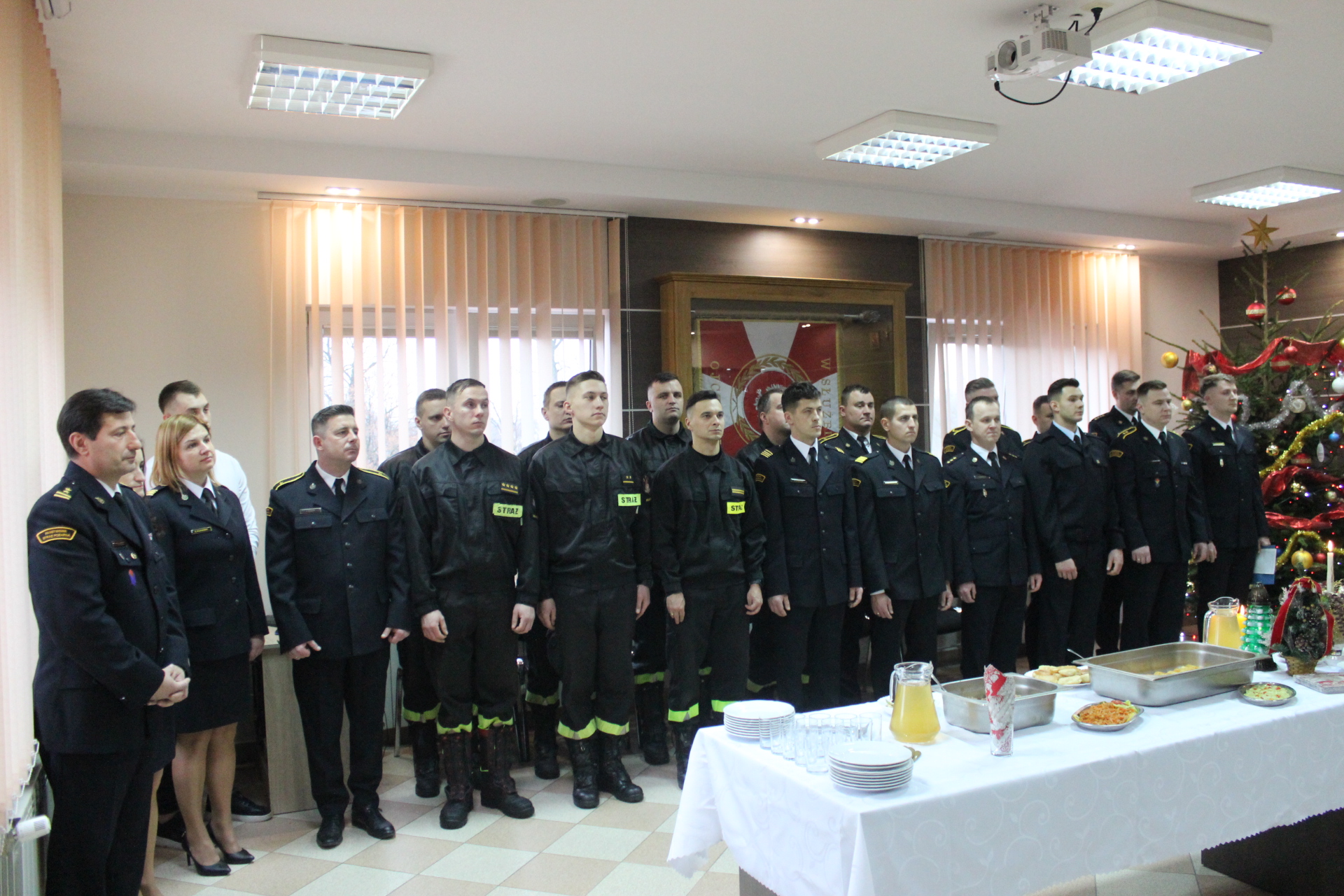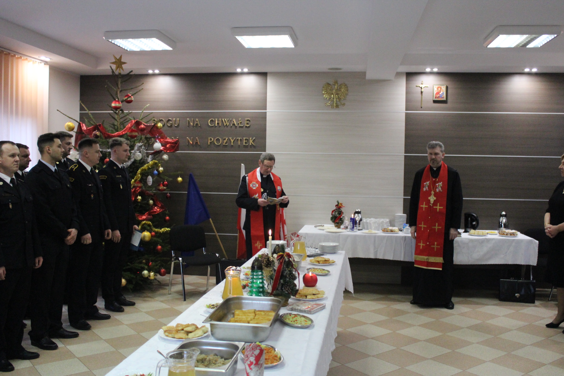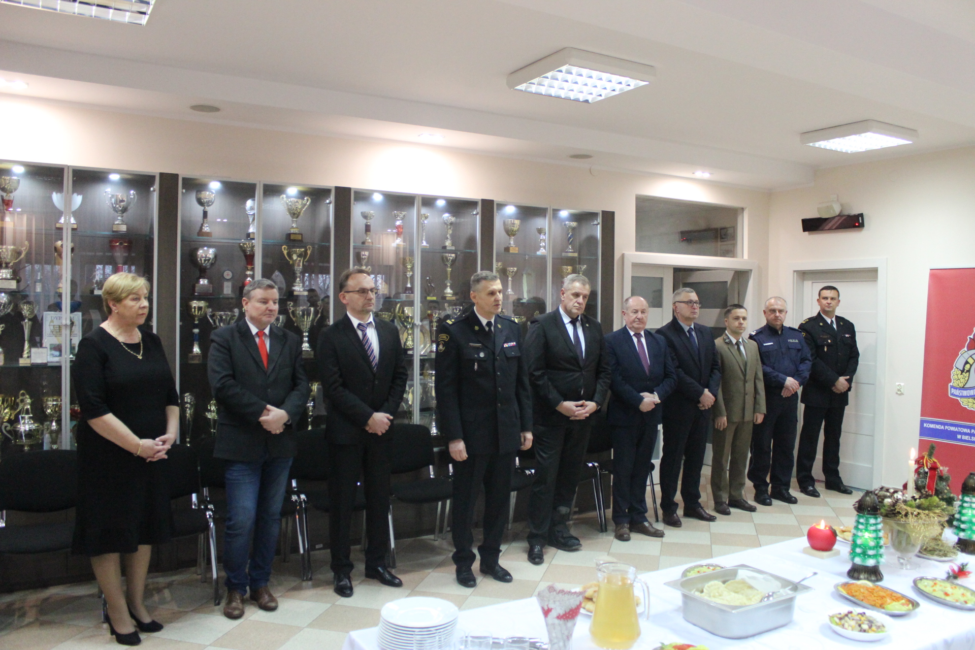 Komendant Powiatowy PSP w Bielsku Podlaski mł. bryg. Wojciech Kusznerko złożył życzenia świąteczne wszystkim funkcjonariuszom, pracownikom oraz zaproszonym gościom. W czasie spotkania głos zabrali także zaproszeni goście. Po przemówieniach i życzeniach gości uczestnicy spotkania tradycyjnie przełamali się opłatkiem i prosforą składając sobie serdeczne życzenia.