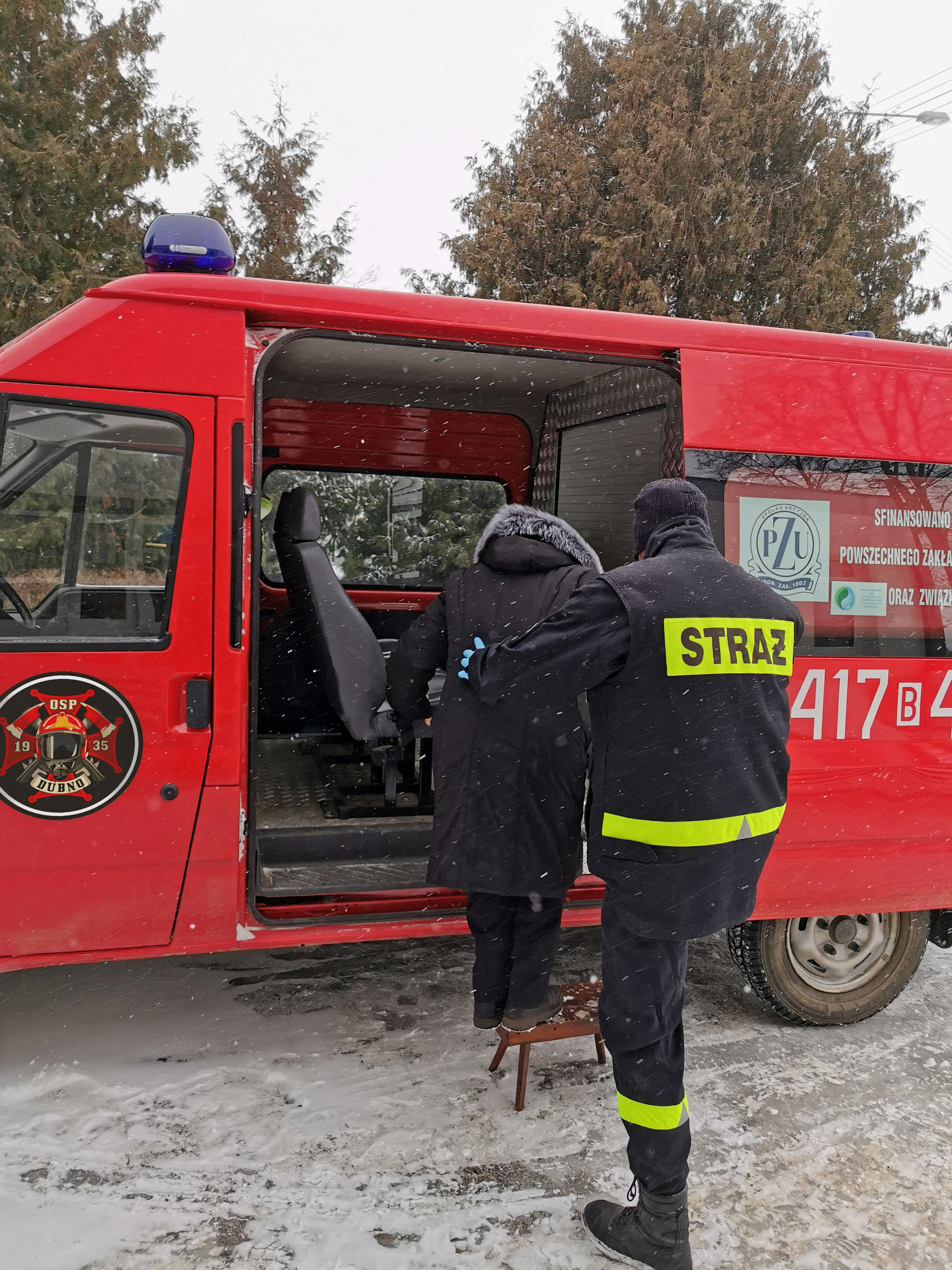 Jako pierwsi na terenie powiatu bielskiego transport osób do punktów szczepień realizowali w dniach 8 i 9 lutego 2021r. druhowie z jednostki OSP Dubno. Transporty wykonane zostały zgodnie z „Wytycznymi dla PSP i OSP w zakresie transportu pacjentów do punktów szczepień jak i personelu medycznego do pacjentów”.
