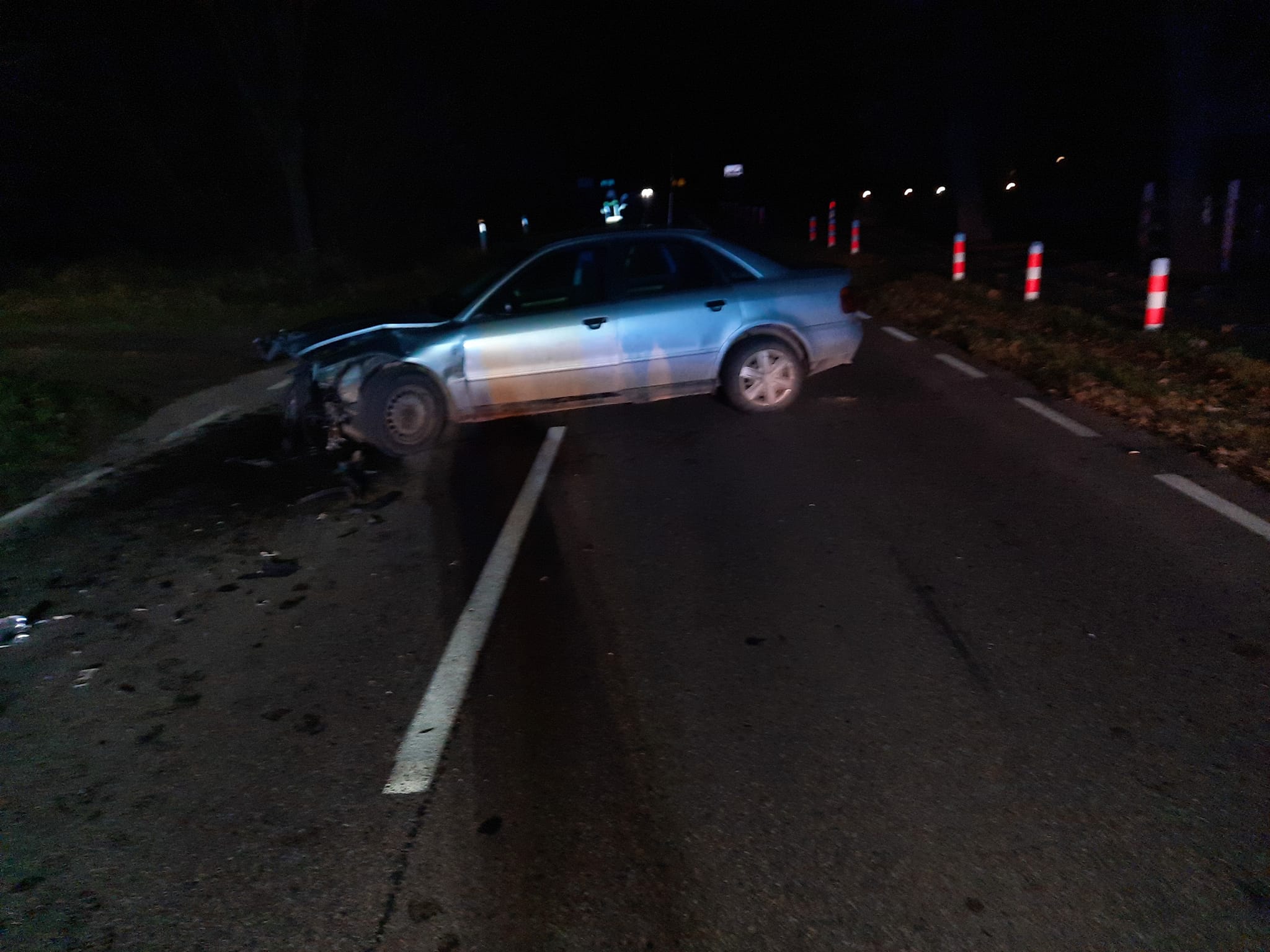 Po przybyciu na miejsce zdarzenia strażacy ustalili, że czołowo zderzyły się dwa samochody osobowe: Audi A4 i Skoda Superb. Pojazdami podróżowali jedynie kierowcy. Opuścili oni uszkodzone pojazdy przed przybyciem służb ratunkowych i nie potrzebowali pomocy medycznej.