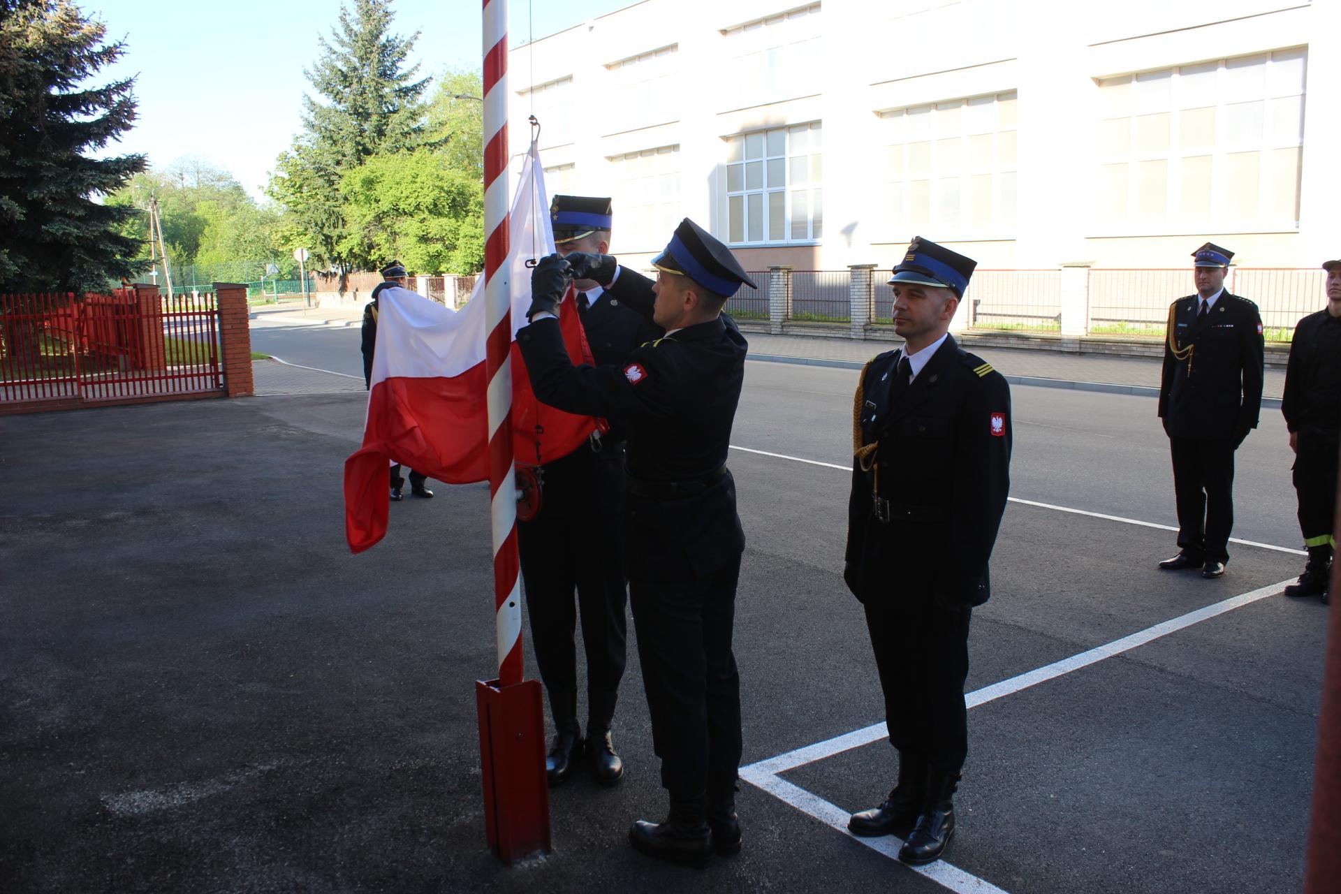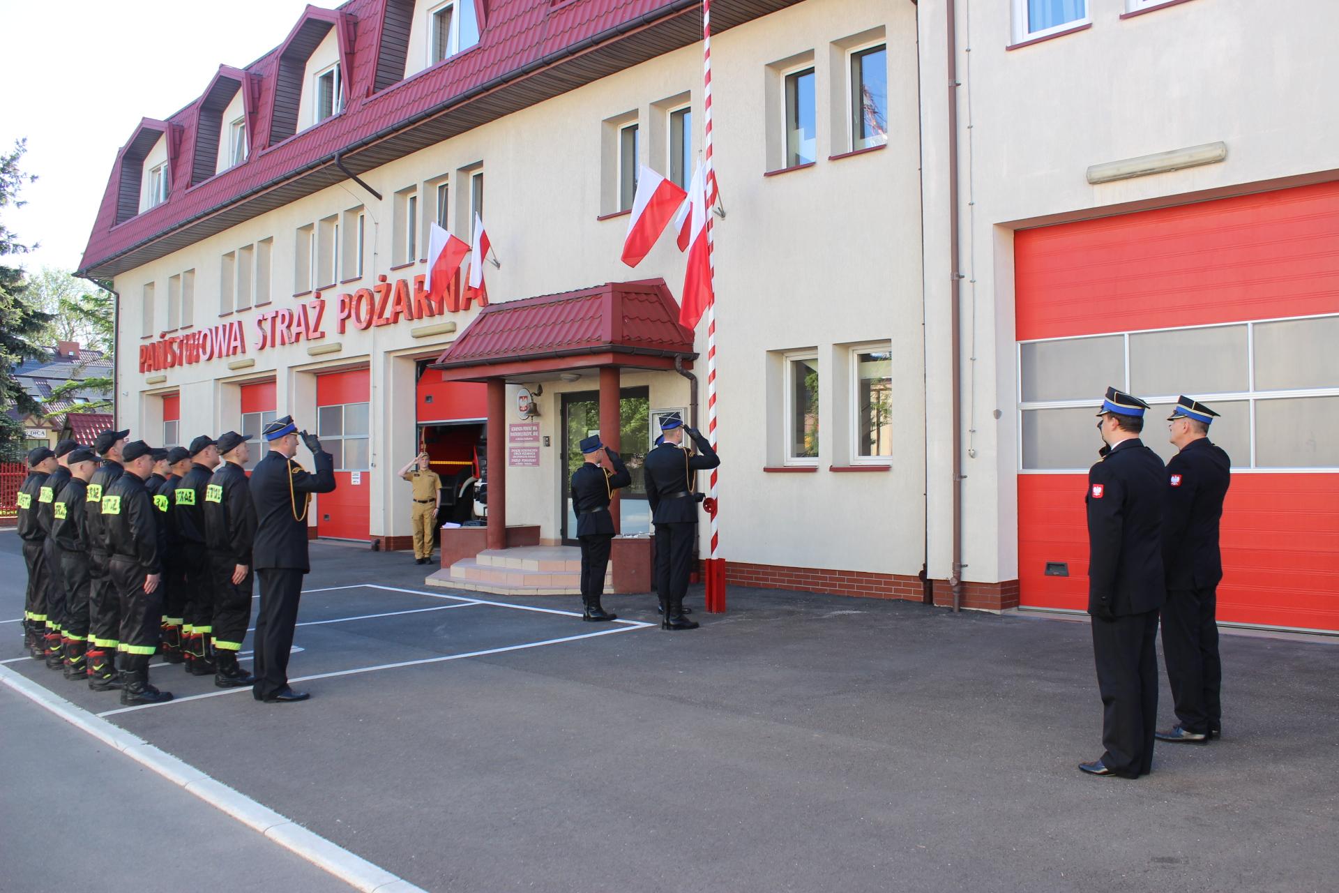 Podczas zbiórki nastąpiło uroczyste podniesienie flagi państwowej na maszt. W uroczystości uczestniczył Komendant Powiatowy PSP w Bielsku Podlaskim mł.bryg. Wojciech Kusznerko wraz z Zastępcą Komendanta Powiatowego PSP w Bielsku Podlaskim bryg. Marcinem Sawickim oraz funkcjonariusze bielskiej komendy.