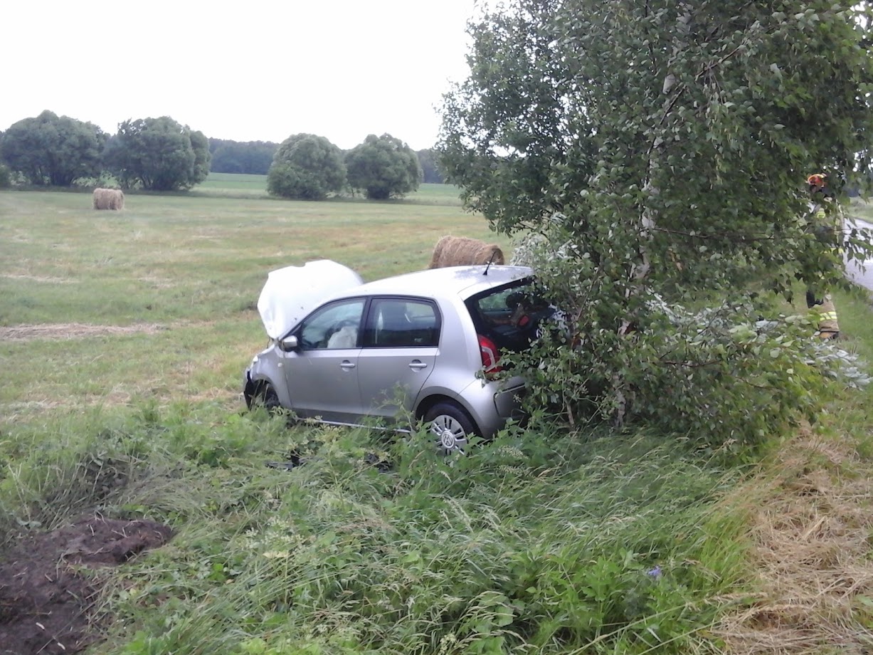 Po przybyciu na miejsce zdarzenia strażacy zastali samochód osobowy Volkswagen UP po dachowaniu stojący na kołach w rowie. Kierująca volkswagenem opuściła rozbity pojazd przed przybyciem zastępów straży pożarnej.