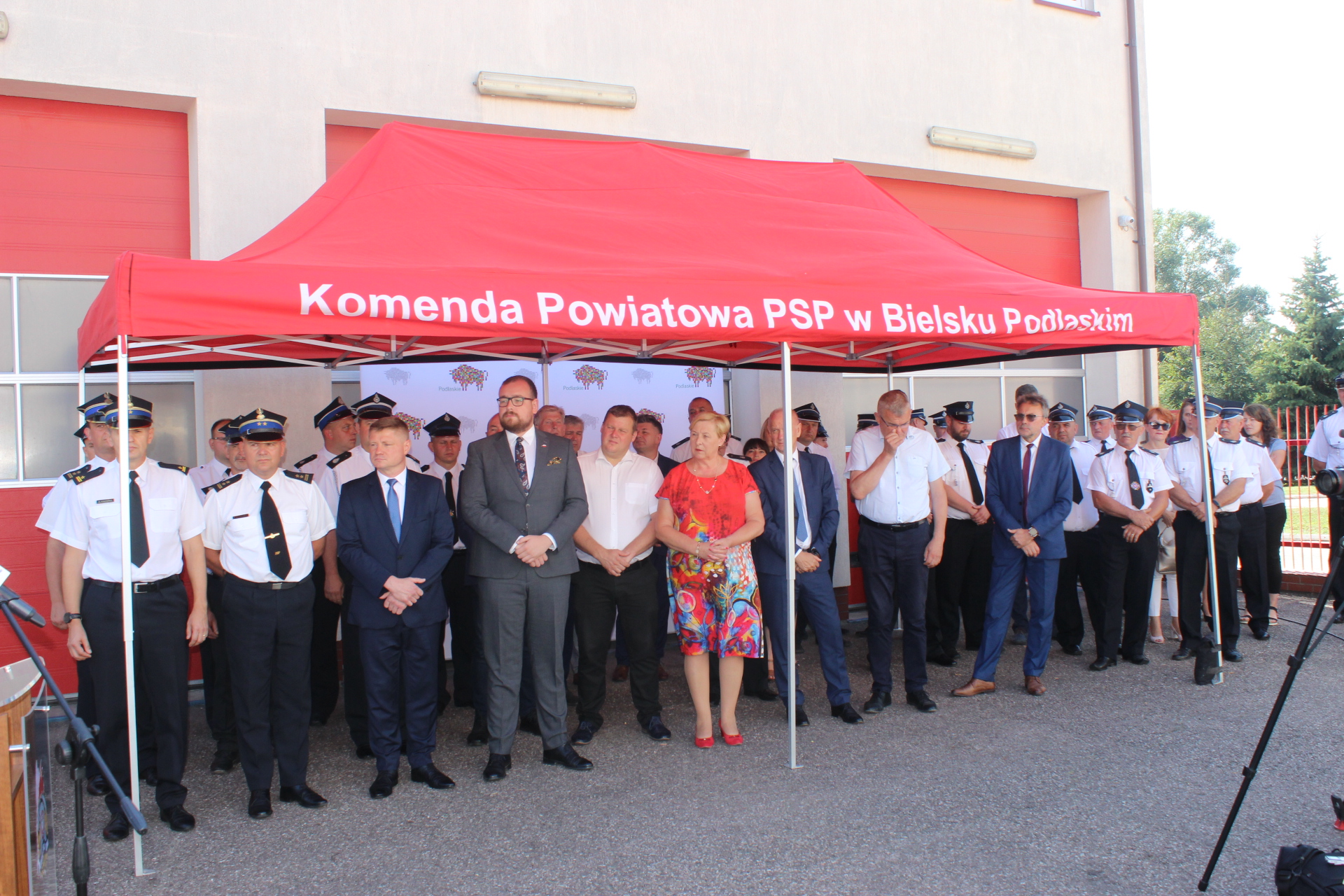 19.08.2022 r. Komenda Powiatowa PSP w Bielsku Podlaskim była gospodarzem konferencji, w trakcie której wręczono symboliczne czeki z dotacjami dla Ochotniczych Straży Pożarnych z terenu powiatów bielskiego, hajnowskiego i siemiatyckiego. Sebastian Łukaszewicz – Wicemarszałek Województwa Podlaskiego oraz Marek Malinowski – Członek Zarządu Województwa Podlaskiego wręczyli je przedstawicielom samorządów i lokalnych jednostek OSP. W uroczystości uczestniczył też bryg. Marcin Bielakowicz – Zastępca Podlaskiego Komendanta Wojewódzkiego PSP