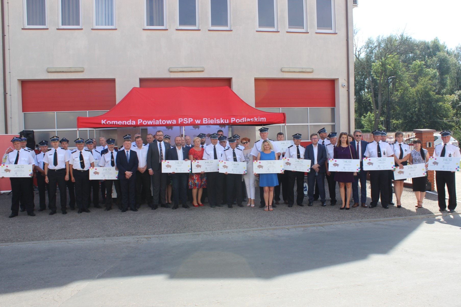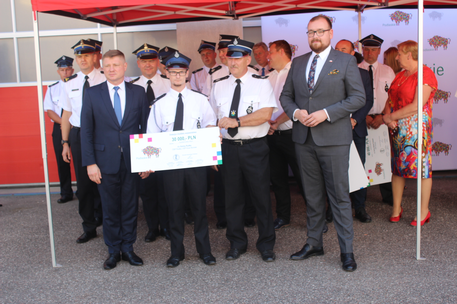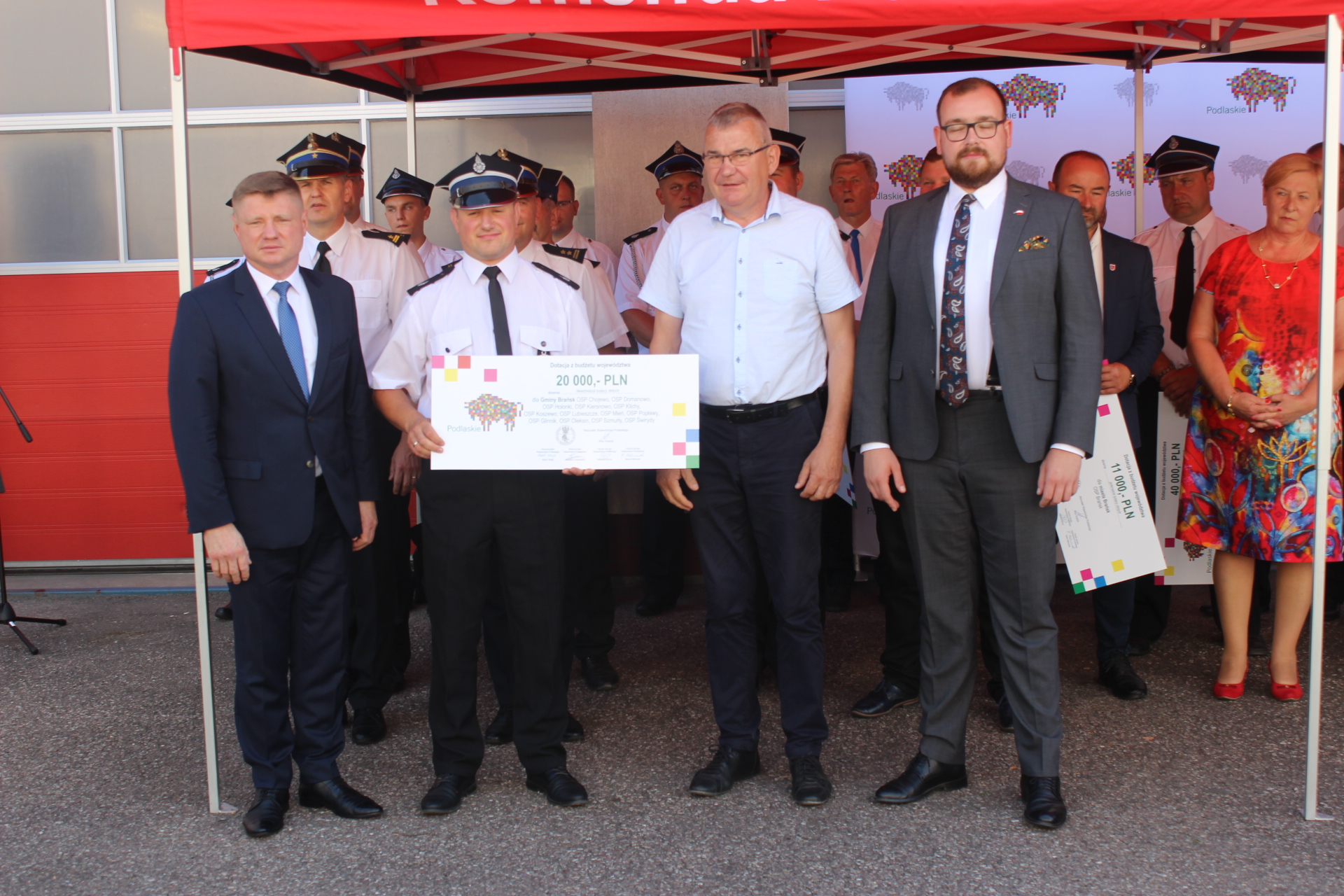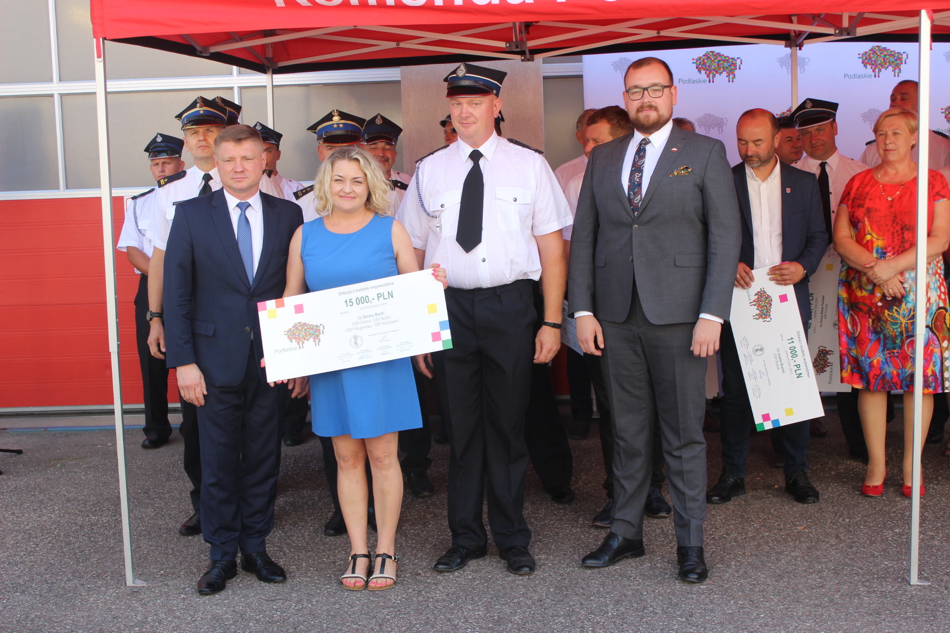 Wręczono symboliczne czeki z dotacjami dla Ochotniczych Straży Pożarnych z terenu powiatów bielskiego, hajnowskiego i siemiatyckiego