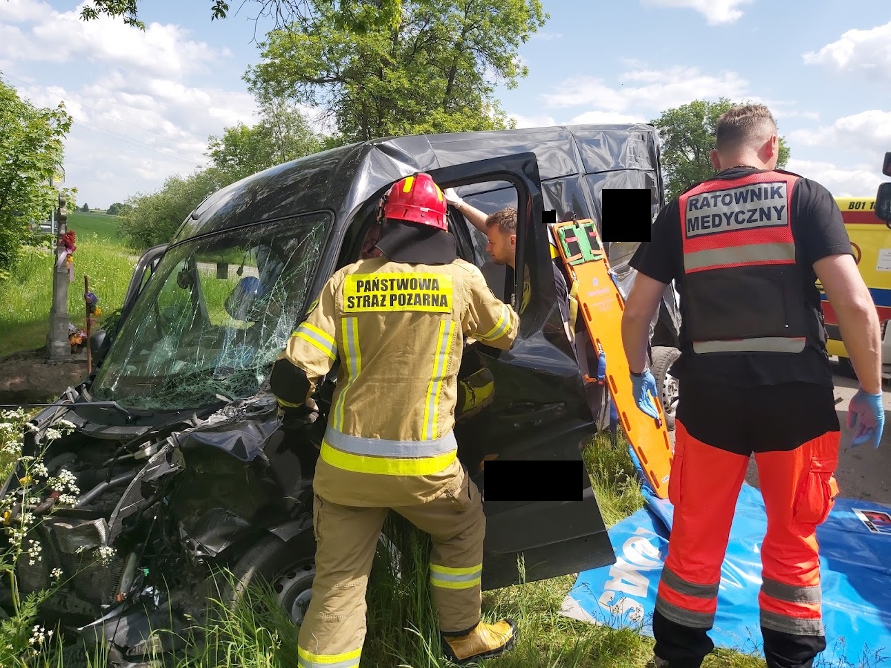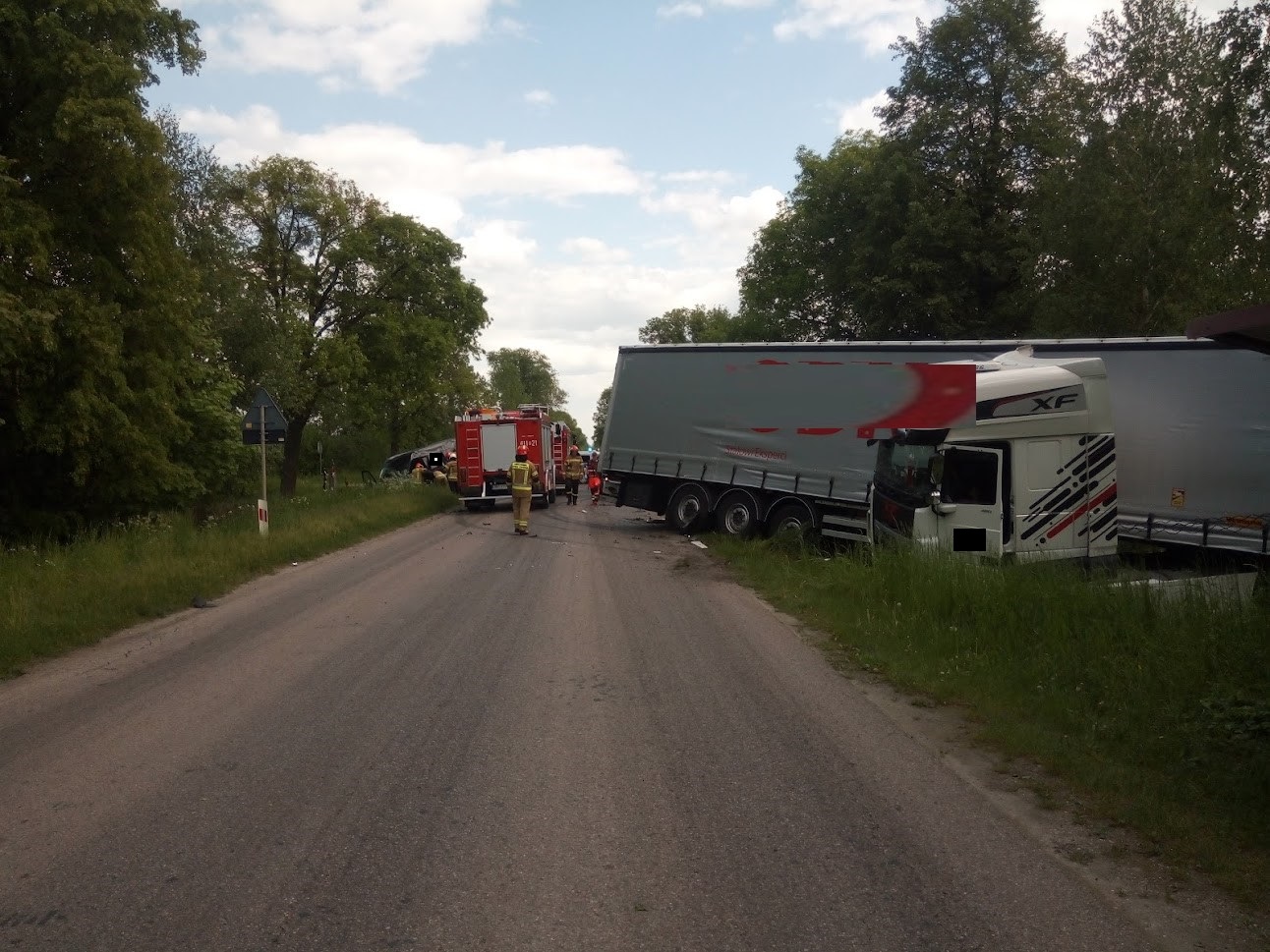 23 maja 2023 r. ok godz. 11.16 do Dyżurnego Stanowiska Kierowania Komendanta Powiatowego w Bielsku Podlaskim wpłynęło zgłoszenie o zderzeniu samochodu ciężarowego z busem. W chwili przybycia zastępów JOP na miejsce zdarzenia, zastano dwa samochody po zderzeniu, stojące na kołach, znajdujące się po przeciwległych pasach DW 684. Pojazdami podróżowali sami kierowcy. Kierowca samochodu ciężarowego, opuścił pojazd przed przybyciem JOP. Działania zastępów polegały na zabezpieczeniu miejsca zdarzenia, wykonaniu dostępu przy użyciu narzędzi hydraulicznych do kierującego samochodem bus oraz pomocy dla Zespołu Ratownictwa Medycznego w ewakuacji poszkodowanego z pojazdu na noszach typu deska. Droga na czas działań była zablokowana w obu kierunkach.