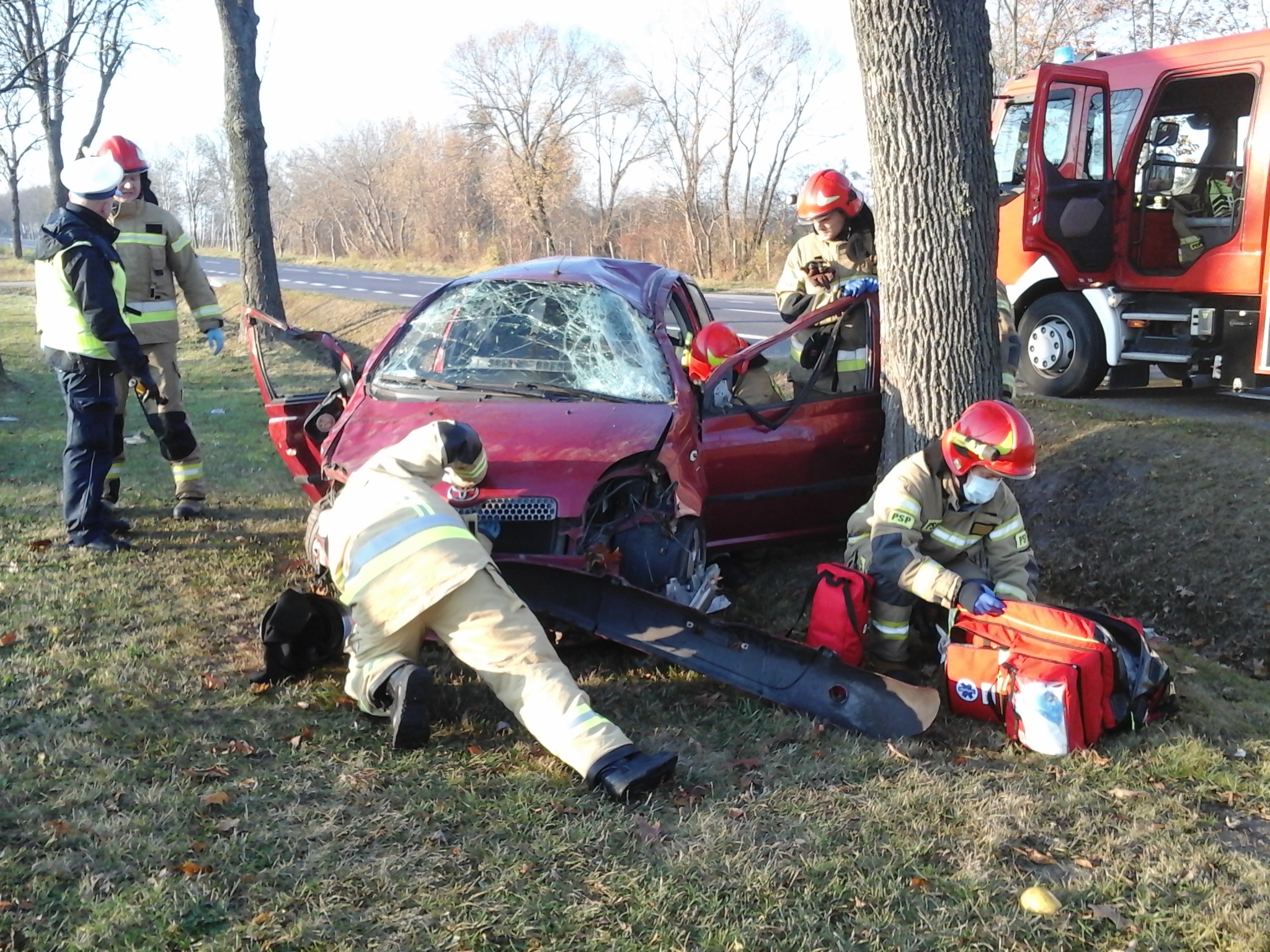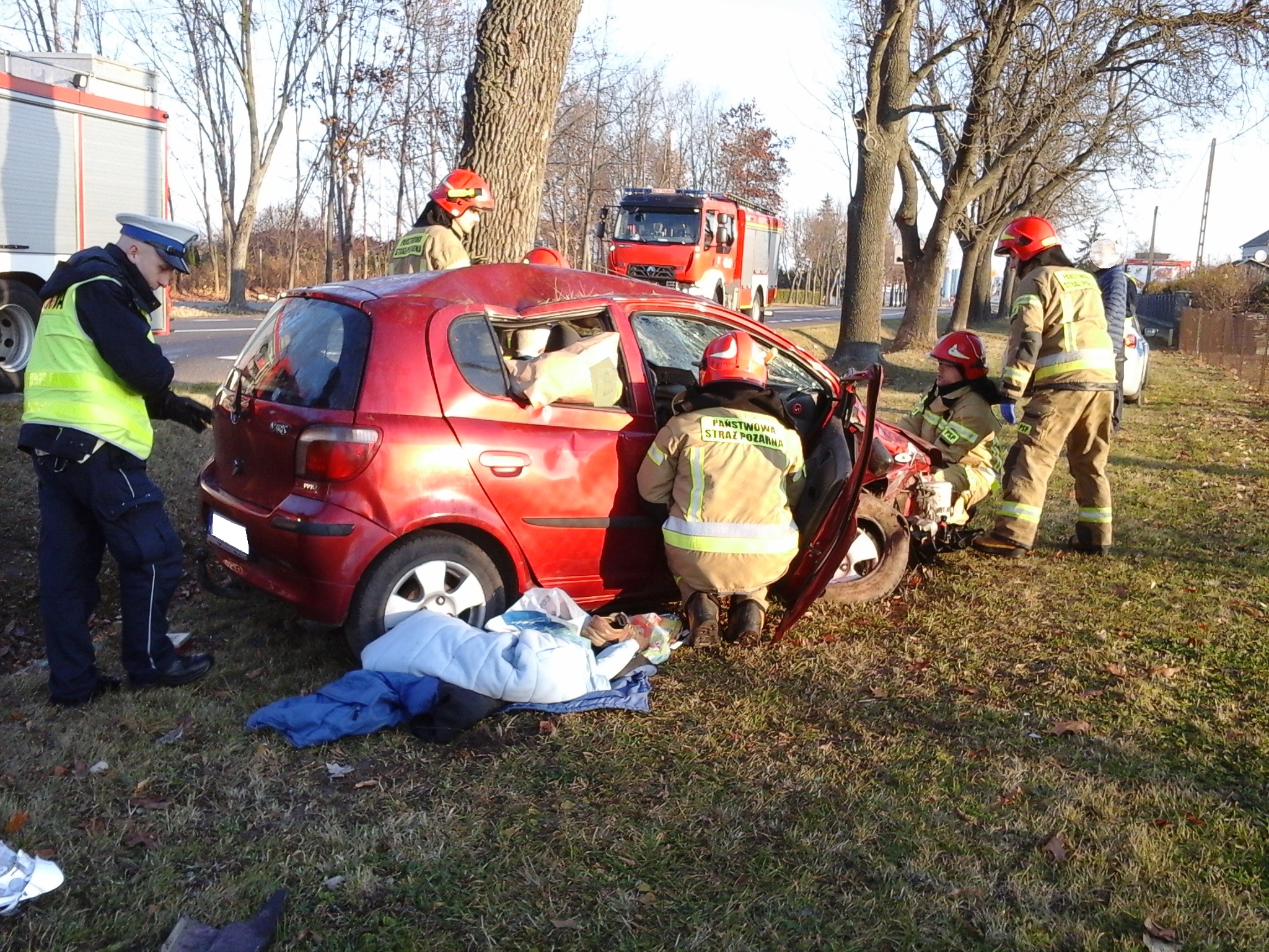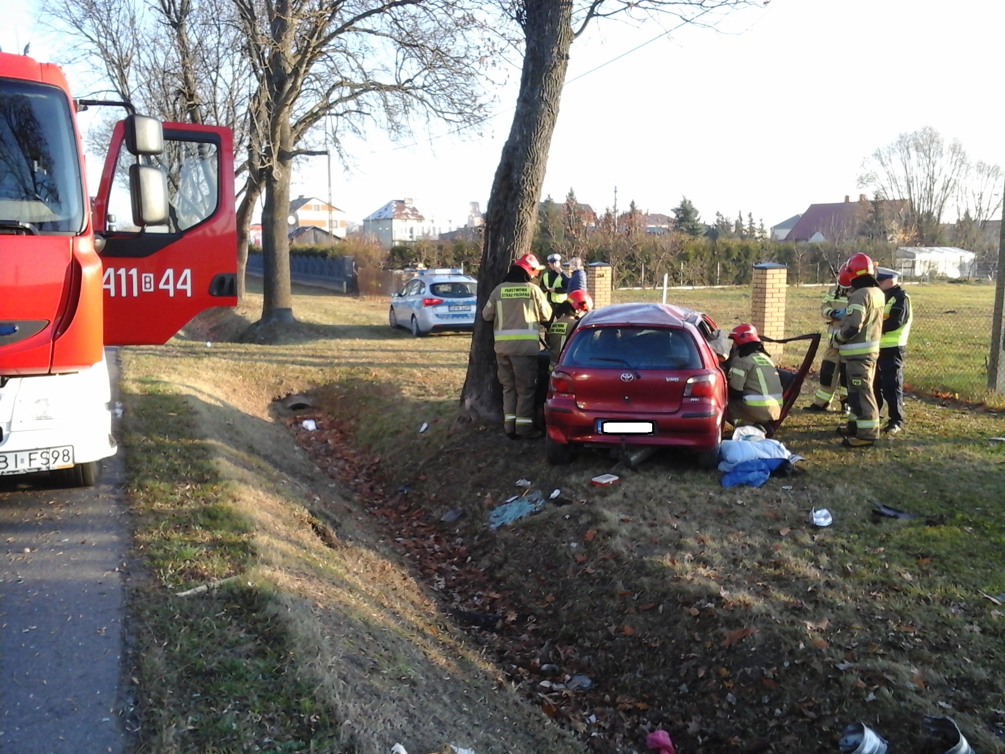 Po przybyciu na miejsce zdarzenia strażacy zastali uszkodzony samochód osobowy Toyota Yaris. Auto, po prawdopodobnym dachowaniu, stało na poboczu drogi. Wewnątrz pojazdu znajdował się ranny kierowca.