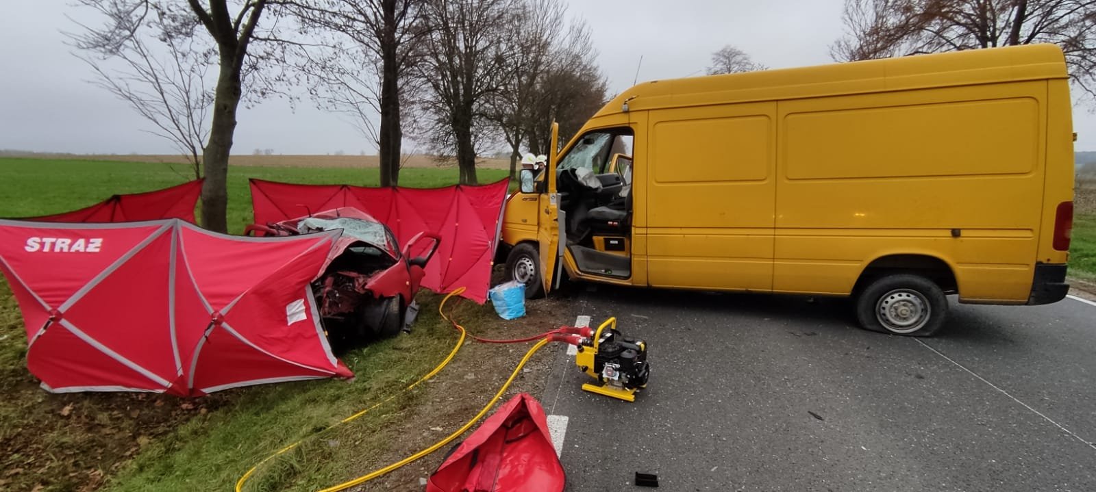 5 listopada b.r. około godz. 7:35 do Stanowiska Kierowania Komendanta Powiatowego PSP w Bielsku Podlaskim wpłynęło zgłoszenie o wypadku drogowym na drodze krajowej nr 19 w pobliżu Andryjanek (odcinek drogi Bielsk Podlaski - Siemiatycze). Samochód osobowy zderzył się czołowo z autem dostawczym. Dwie osoby podróżujące samochodem osobowym zginęły. Kierowca busa nie odniósł obrażeń. Na czas prowadzenia działań droga została zablokowana.