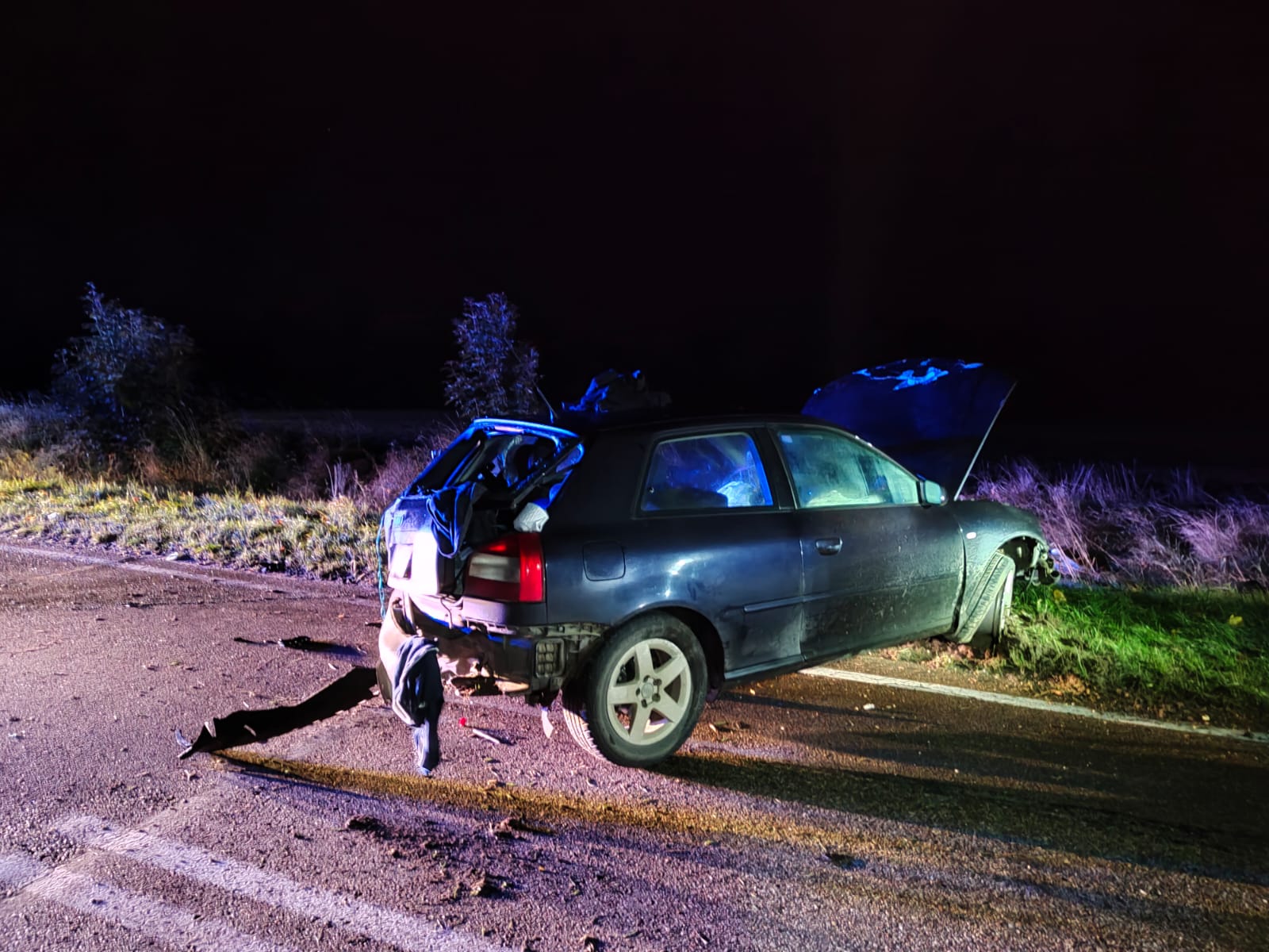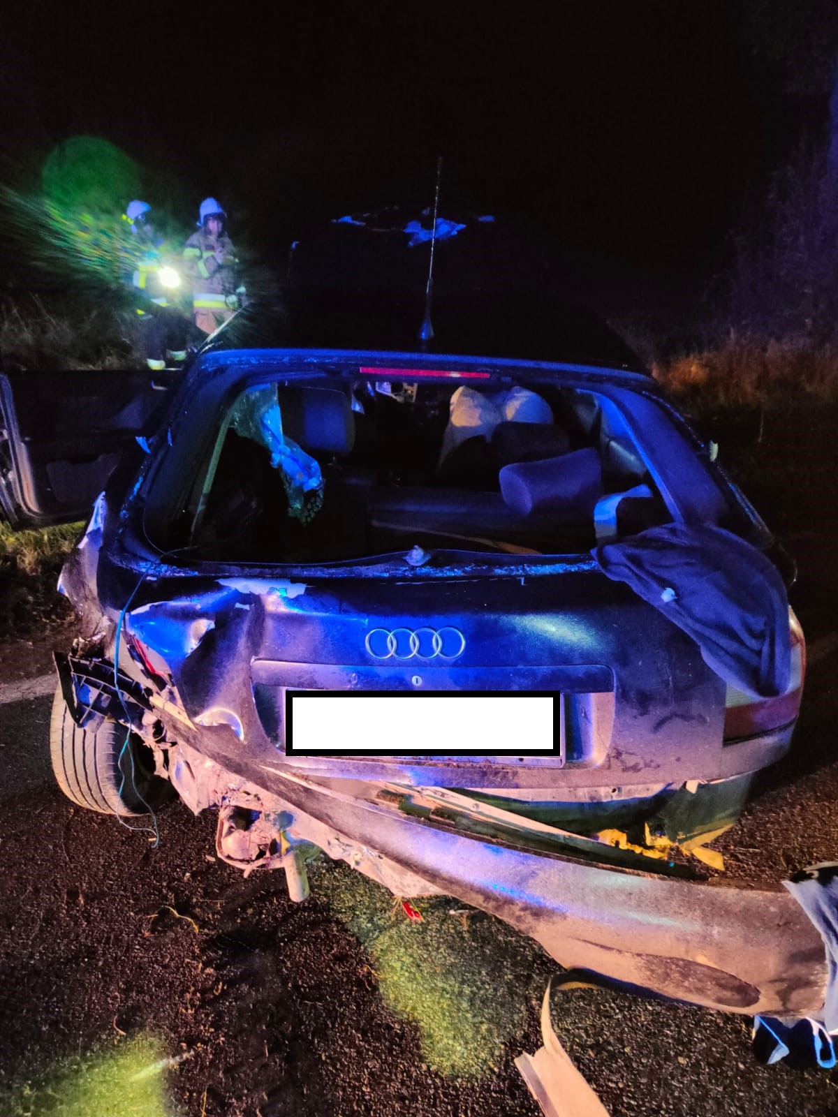 Po przybyciu na miejsce zdarzenia strażacy zastali zniszczony samochód osobowy marki Audi stojący na kołach. Autem podróżowały dwie osoby, które opuściły uszkodzony pojazd o własnych siłach przed przybyciem służb ratowniczych. Działania strażaków polegały na zabezpieczeniu miejsce zdarzenia, odłączeniu akumulatora w uszkodzonym pojeździe oraz udzieleniu kwalifikowanej pierwszej pomocy uczestnikom zdarzenia. Poszkodowanych przekazano przybyłym na miejsce zdarzenia Zespołom Ratownictwa Medycznego.