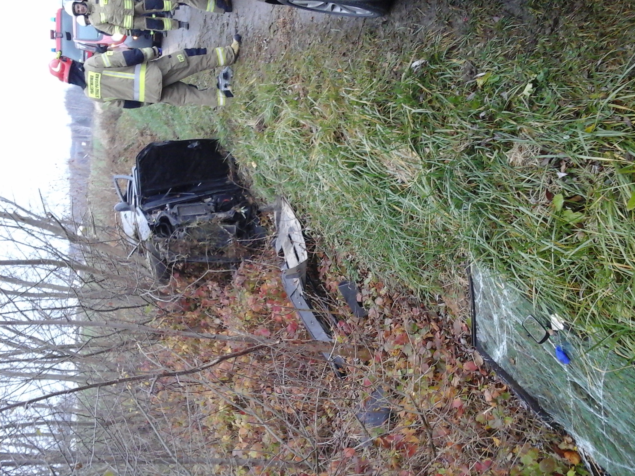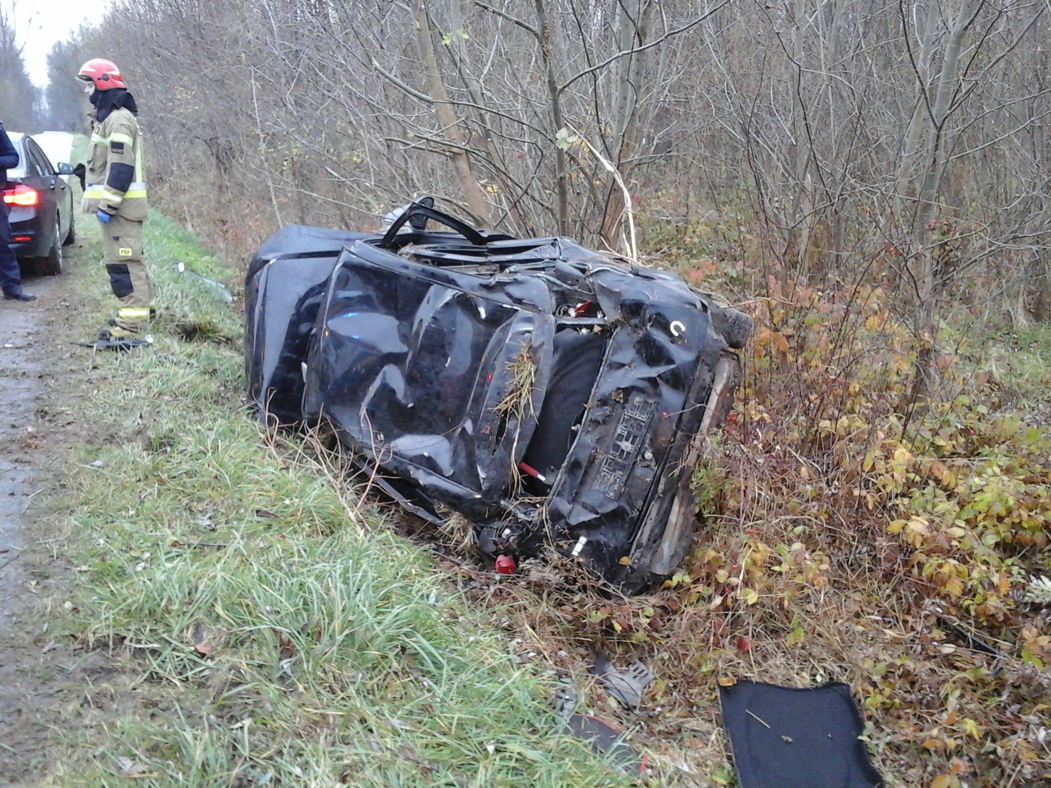 Po przybyciu na miejsce zdarzenia strażacy zastali uszkodzony samochód osobowy Ford Focus w przydrożnym rowie. Autem podróżował sam kierowca – opuścił on pojazdy przed przybyciem służb ratowniczych.