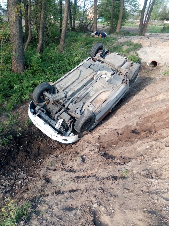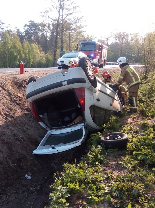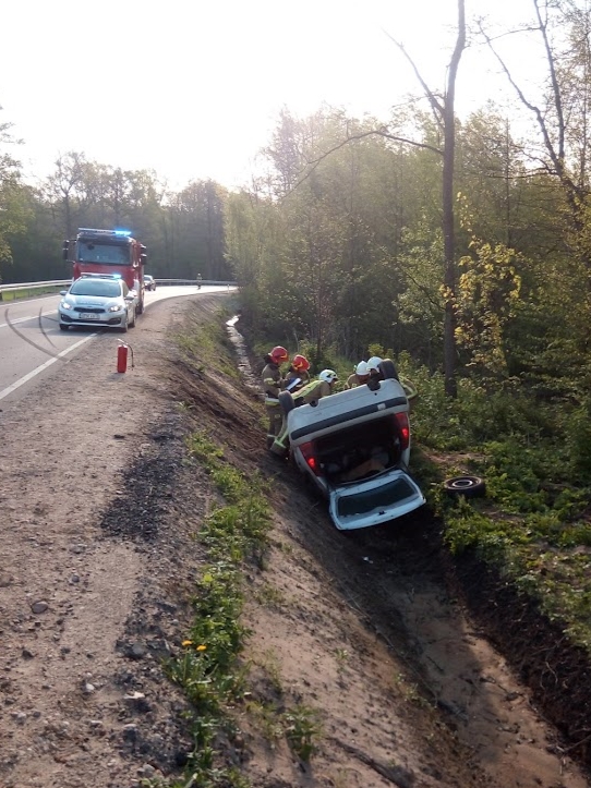 Po przybyciu na miejsce zdarzenia zastali samochód osobowy Citroen C3 leżący na dachu w przydrożnym rowie. Pojazdem podróżował jedynie kierowca. Mężczyzna samodzielnie opuścił pojazd przed przybyciem zastępów straży pożarnej. Nie doznał on żadnych obrażeń. Strażacy zabezpieczyli miejsce zdarzenia, odłączeniu akumulator w uszkodzonym pojeździe oraz postawili auto na koła. W czasie prowadzenia działań ratowniczych w miejscu wypadku strażacy kierowali również ruchem.
