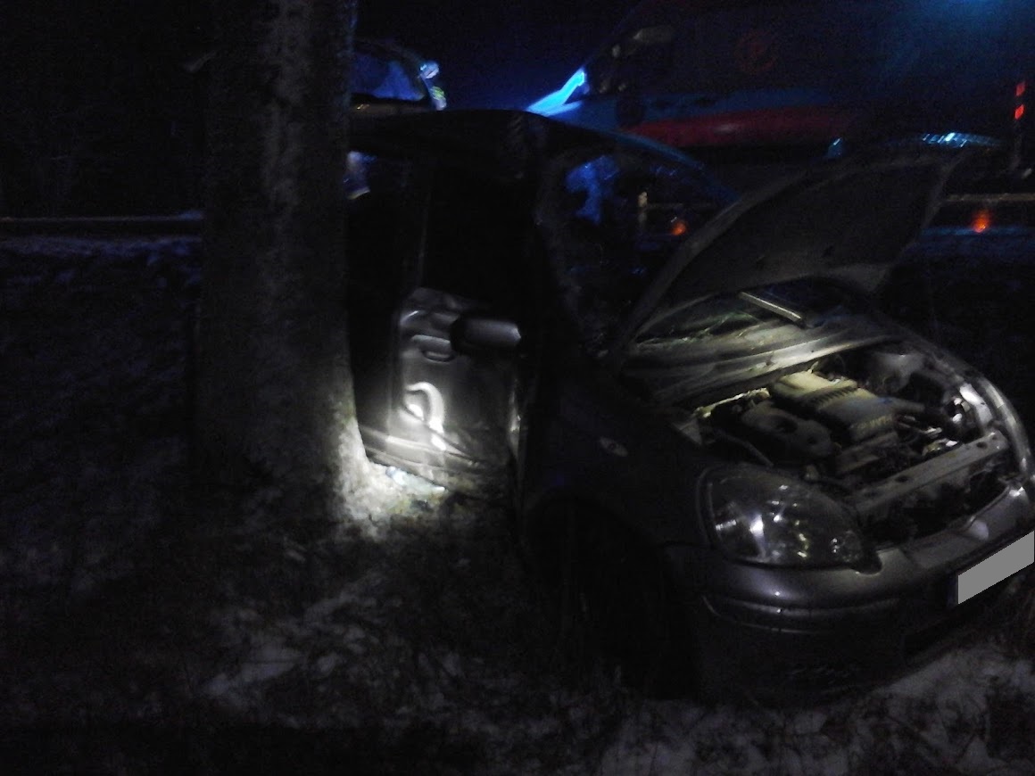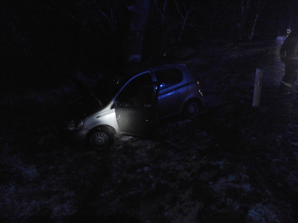Na miejscu zdarzenia strażacy zastali stojący na poboczu jezdni samochód osobowy Toyota Yaris po bocznym uderzeniu w drzewo. Autem podróżowała jedna osoba. Pomocy medycznej poszkodowanej udzielił zespół ratownictwa medycznego. Została ona odwieziona do szpitala.