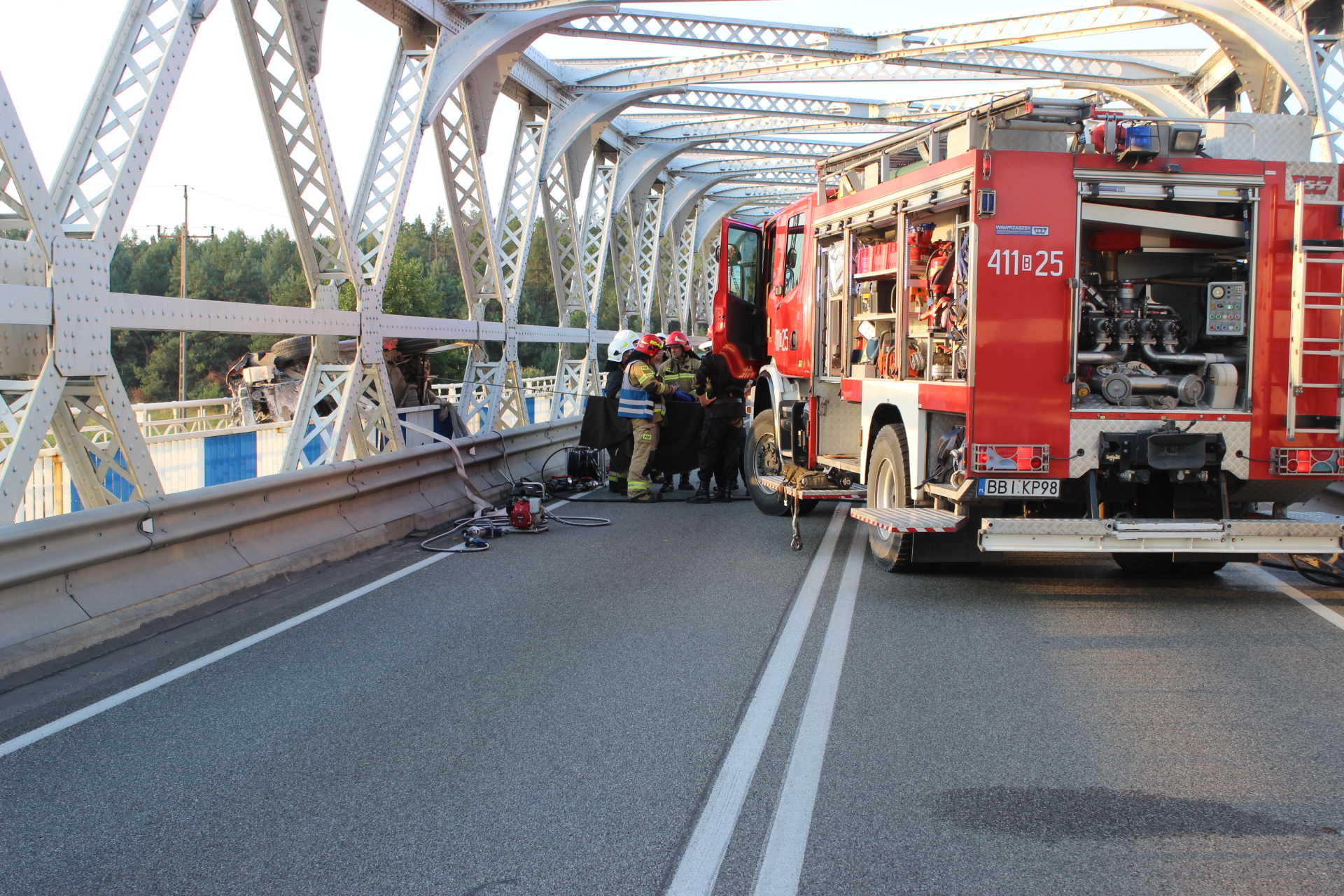 O godz. 17:30 w JRG w Bielsku Podlaskim rozebrzmiał kolejny alarm. Na moście na rzece Narew pomiędzy Ploskami i Rybołami (pow. białostocki) doszło do groźnego wypadku. Auto osobowe utknęło pomiędzy balustradą a przęsłami mostu na ciągu przeznaczonym dla pieszych. W pojeździe pozostawały zakleszczone dwie osoby. Strażacy zabezpieczyli miejsce zdarzenia, ustabilizowali pojazd i przy użyciu narzędzi hydraulicznych wykonali dostęp do osób poszkodowanych. Jedną osobę z rozbitego pojazdu strażacy ewakuowali i przekazali pod opiekę Zespołowi Ratownictwa Medycznego. Ranną osobę odwieziono do szpitala. Niestety lekarz przybyły na miejsce zdarzenia stwierdził zgon drugiego uczestnika zdarzenia. Na czas prowadzenia działań ratowniczych droga została zablokowana. Z uwagi na fakt, że do zdarzenia doszło na terenie powiatu białostockiego, tuż przy granicy z powiatem bielskim, do zdarzenia zadysponowano zastępy straży pożarnej z obu powiatów. W działaniach brały udział 3 zastępy z JRG w Bielsku Podlaskim, zastęp z JRG nr 4 w Białymstoku i OSP Ploski.