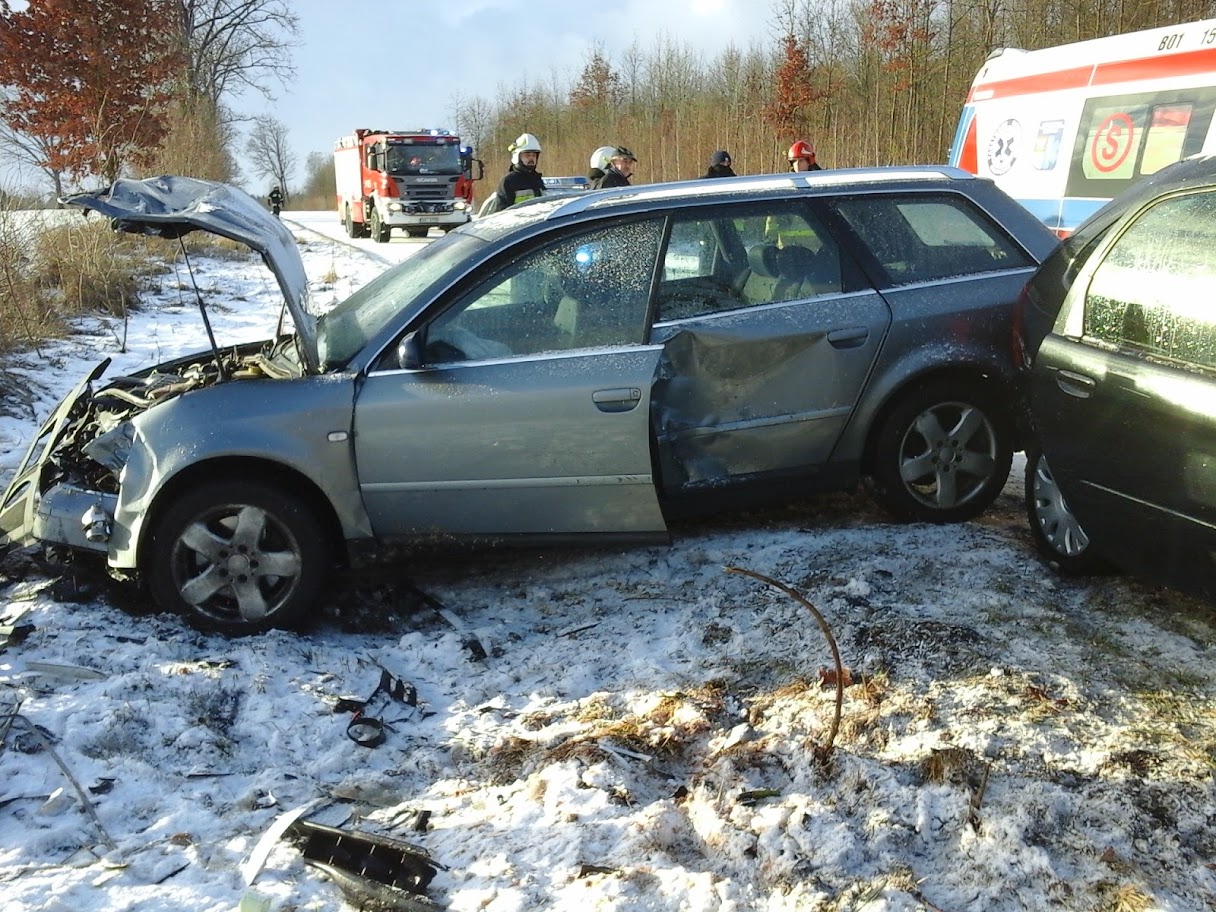 Po przybyciu strażaków na miejsce zdarzenia ustalono, że doszło do czołowego zderzenia dwóch samochodów osobowych: Citroëna Xsara Picasso i Audi A6. Autami biorącymi udział w zdarzeniu podróżowali jedynie kierowcy.