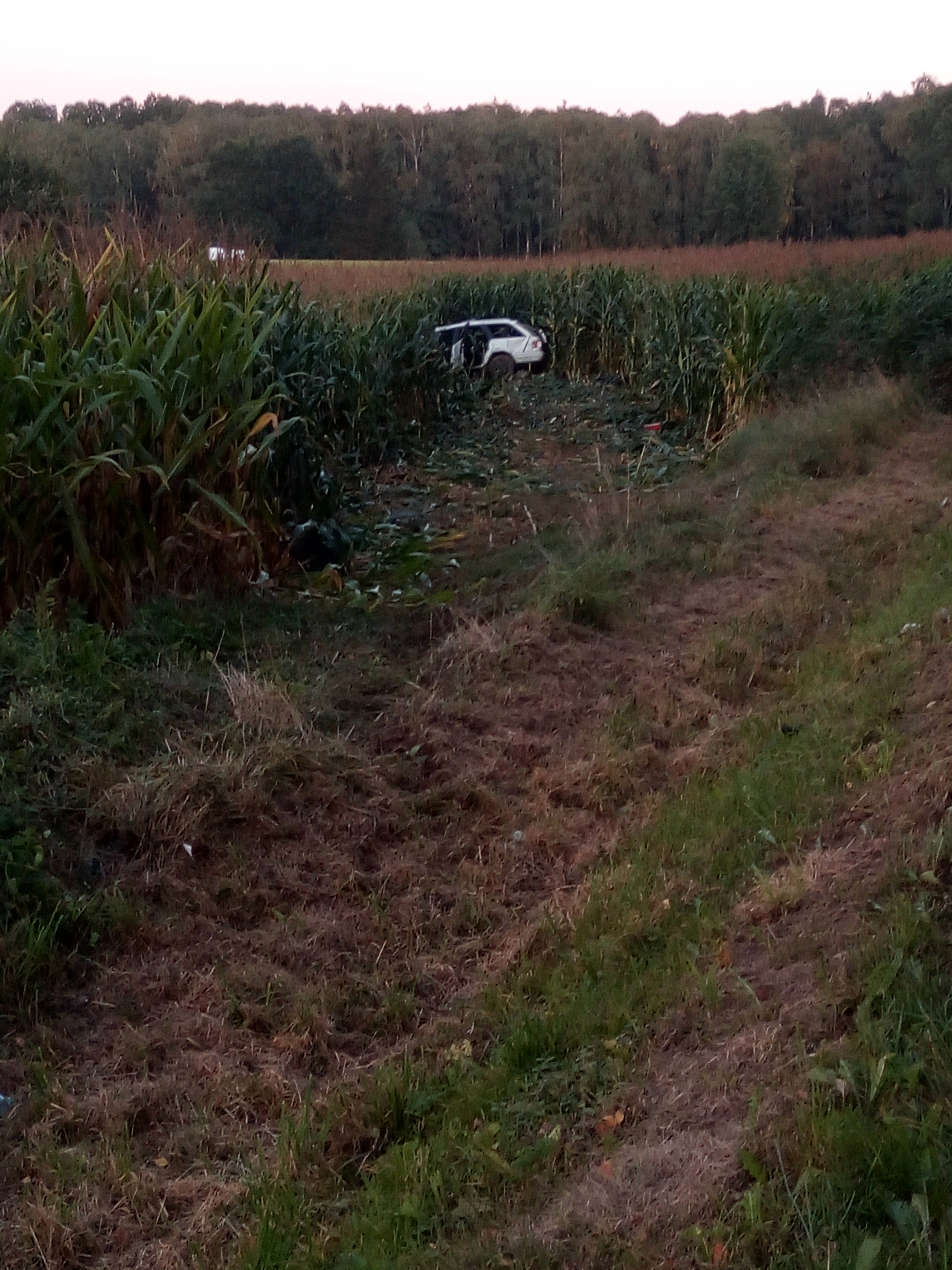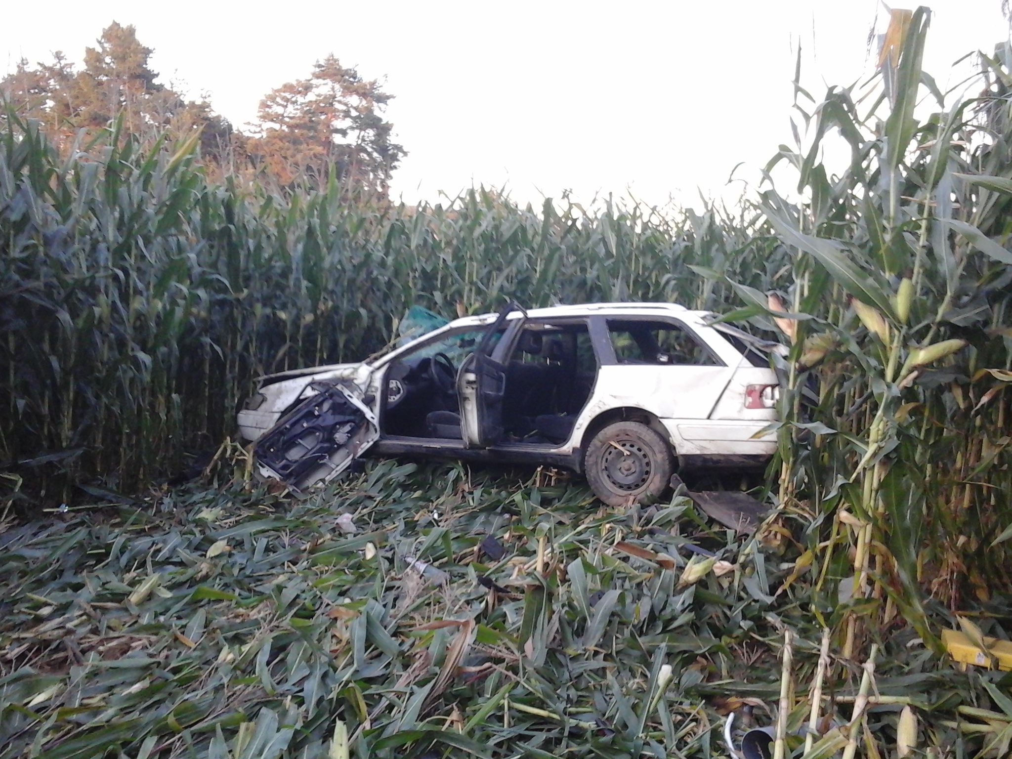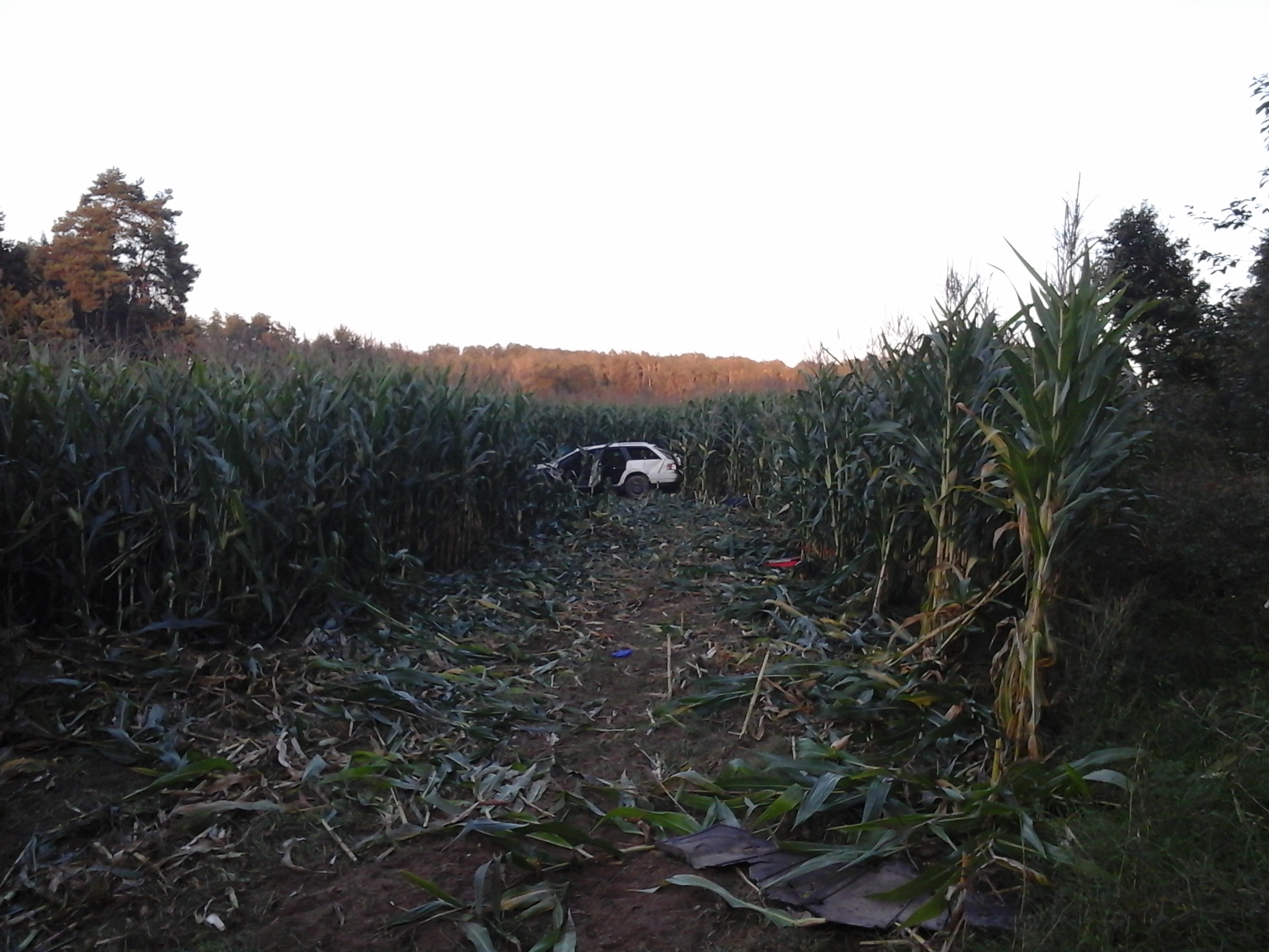 Po przybyciu strażaków na miejsce zdarzenia zastano samochód osobowy Audi, który zjechał z drogi w głąb pobliskiego pola kukurydzy. Rozbity pojazd znajdował się około 40 metrów od jezdni. Ustalono, że autem podróżował jedynie kierowca. Opuścił on pojazd o własnych siłach przed przybyciem zastępów straży pożarnej.