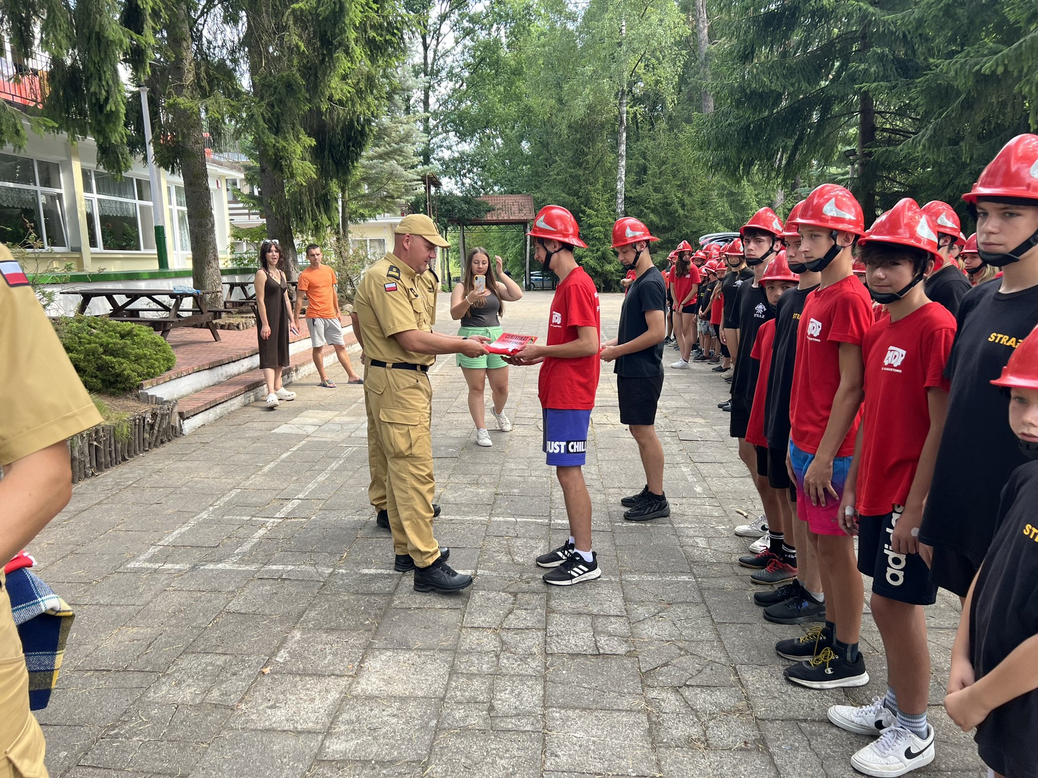 17 sierpnia b.r. odbyła się uroczysta zbiórka podsumowująca dwutygodniowy obóz. W wydarzeniu uczestniczył Zastępca Podlaskiego Komendanta Wojewódzkiego PSP bryg. Marcin Bielakowicz wraz z Komendantem Powiatowym PSP w Bielsku Podlaskim mł.bryg. Wojciechem Kusznerko oraz Zastępcą Komendanta Powiatowego PSP w Ełku st. bryg. Pawłem Litwinowiczem.