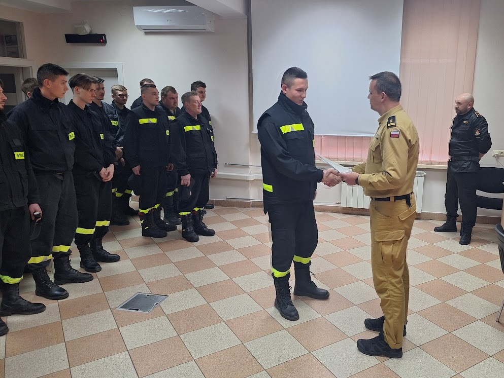17 marca b.r. w Komendzie Powiatowej Państwowej Straży Pożarnej w Bielsku Podlaskim zakończyło się szkolenie podstawowe strażaków ratowników ochotniczych straży pożarnych z terenu powiatu bielskiego. Egzamin końcowy zaliczyło 26 osób. Zaświadczenia potwierdzające ukończenie szkolenia wszystkim słuchaczom wręczył Zastępca Komendanta Powiatowego PSP w Bielsku Podlaskim bryg. Marcin Sawicki.
