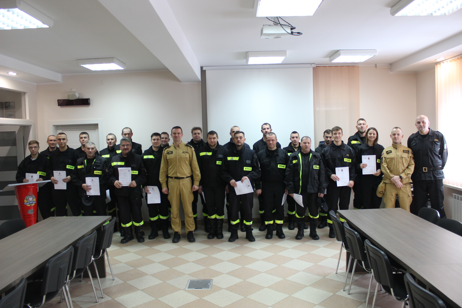 Zaświadczenia potwierdzające ukończenie szkolenia wszystkim słuchaczom wręczył Zastępca Komendanta Powiatowego PSP w Bielsku Podlaskim bryg. Marcin Sawicki.