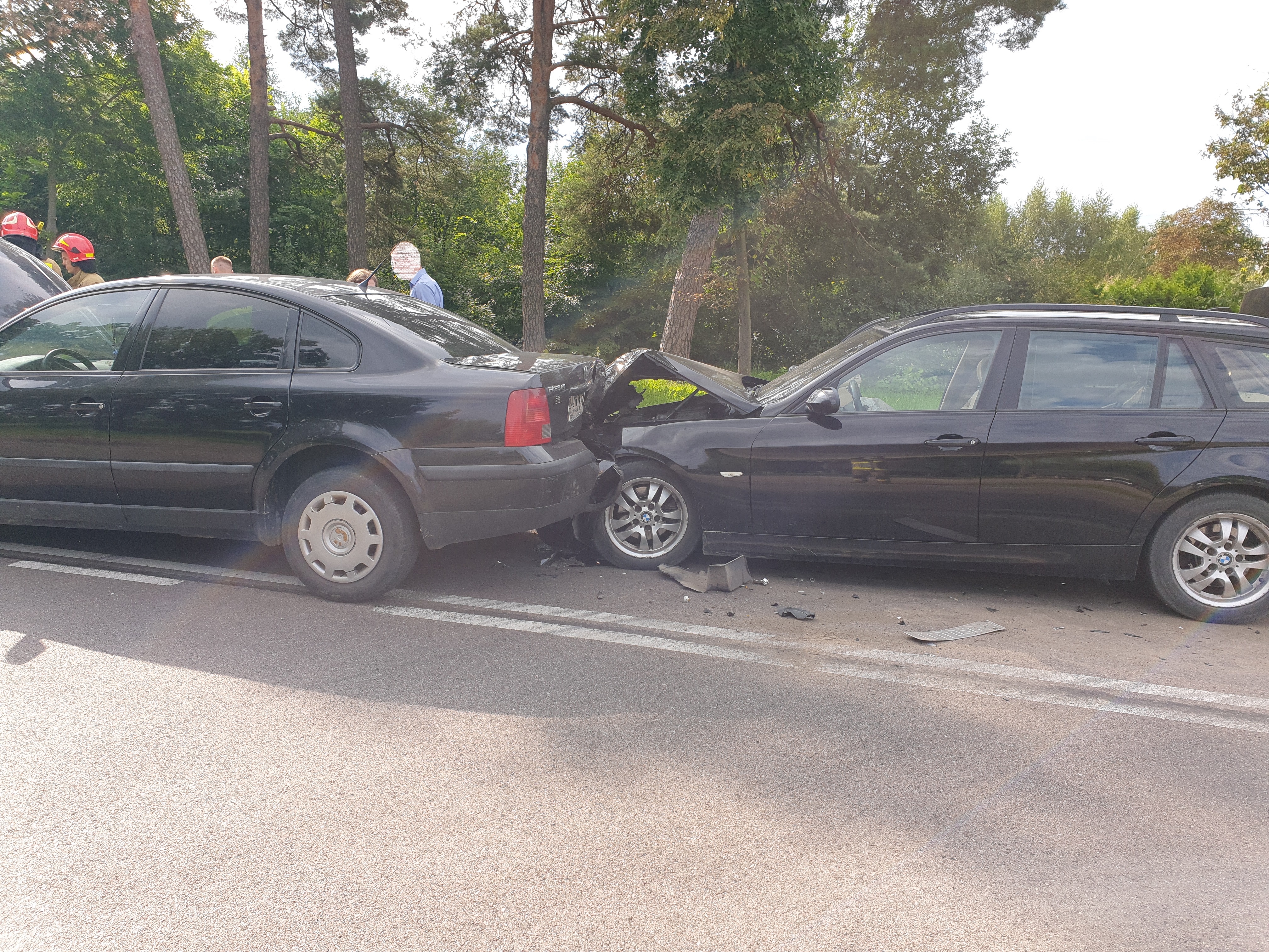 W chwili przybycia zastępów straży pożarnej na miejsce zdarzenia stwierdzono, że doszło do zderzenia dwóch samochodów osobowych: Volkswagena i BMW. Pojazdami podróżowało łącznie 6 osób, w tym 2 dzieci. Wszyscy opuścili uszkodzone pojazdy przed przybyciem służb ratowniczych.
