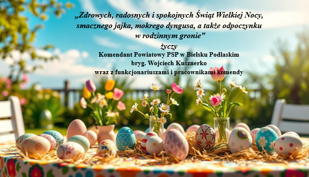 Życzenia Wielkanocne Komendanta Powiatowego PSP w Bielsku Podlaskim 03.04.2026 Zdjęcia (1) Pokaż zdjęcie 1 z galerii.