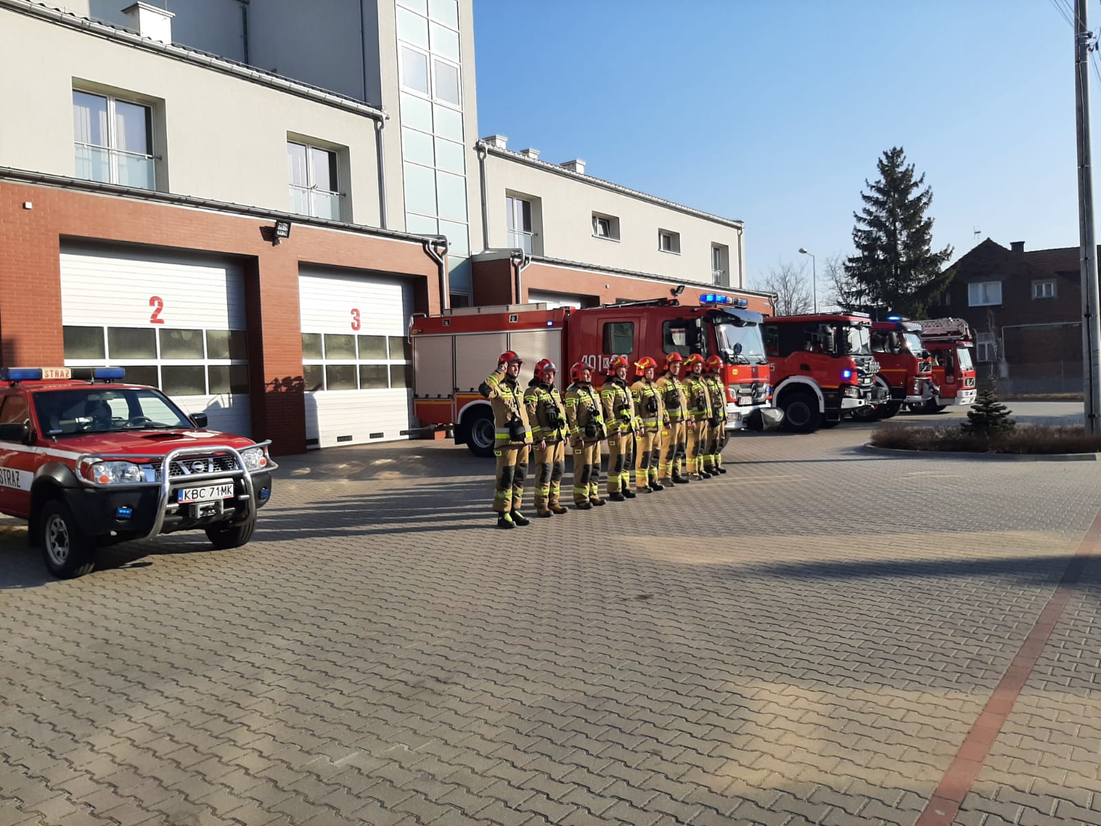 O godzinie 8:00 przed budynkiem Komendy PSP w Bochni oraz budynkami remiz jednostek OSP rozpoczęły się zbiórki. Pożarnicze wozy bojowe wyjechały przed garaże i włączono w nich sygnały świetlne.