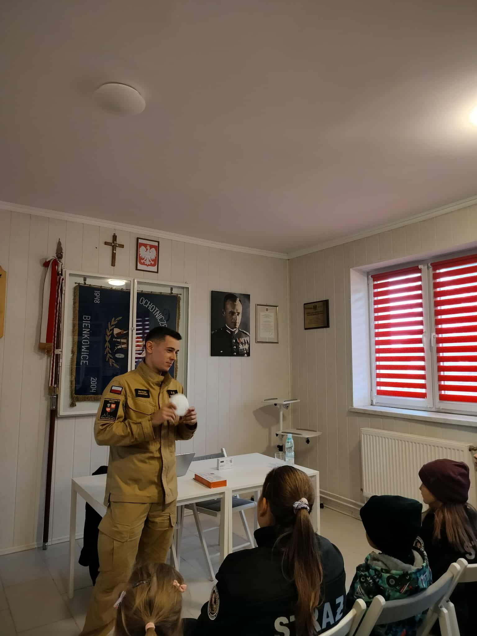 11 października 2025 roku strażak z Komendy Powiatowej Państwowej Straży Pożarnej w Bochni uczestniczył w prelekcjach prowadzonych w ramach ogólnopolskiej kampanii „Czujka na straży Twojego bezpieczeństwa!”.