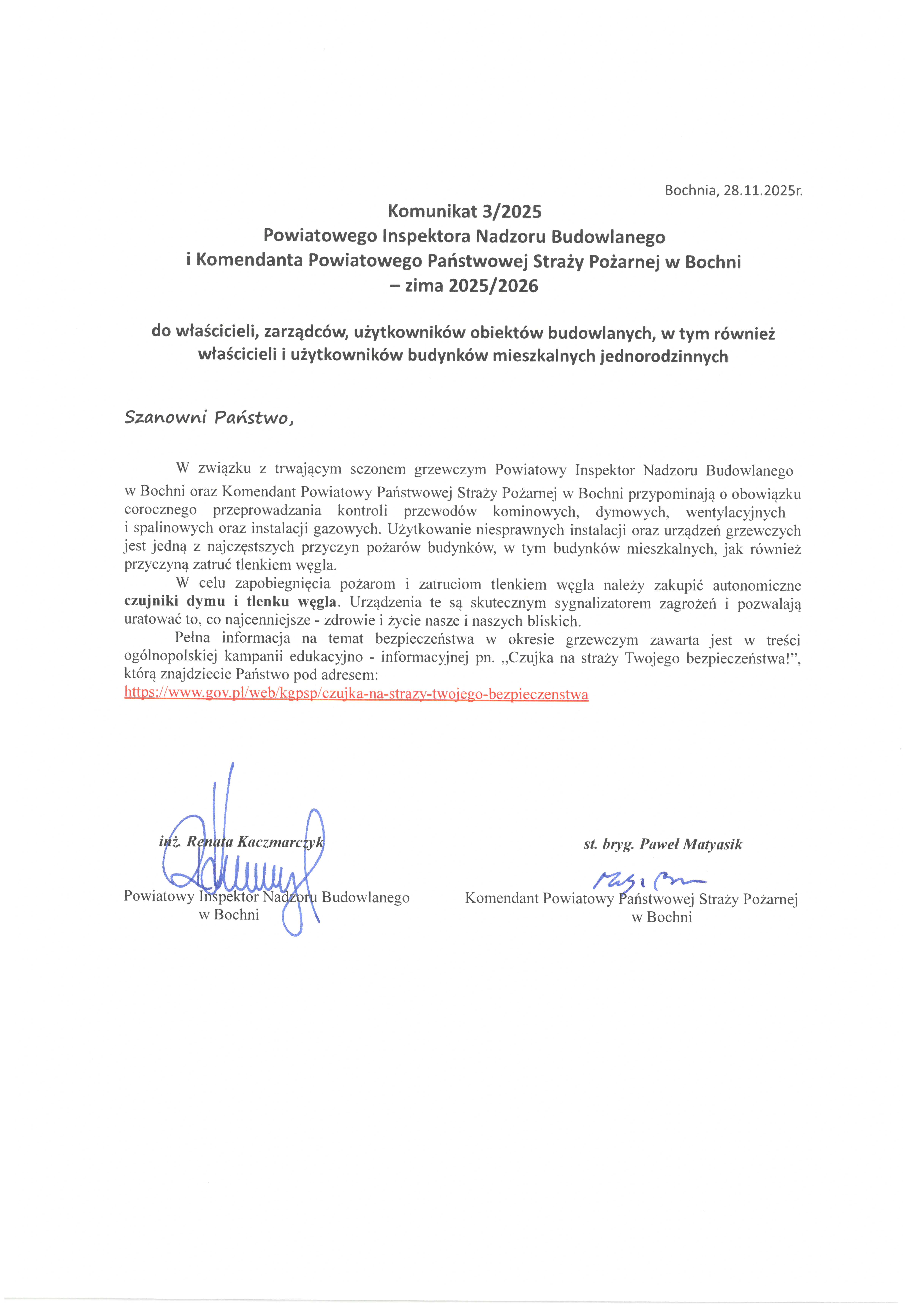 Komunikat Komendanta Powiatowego PSP i Powiatowego Inspektora Nadzoru Budowlanego