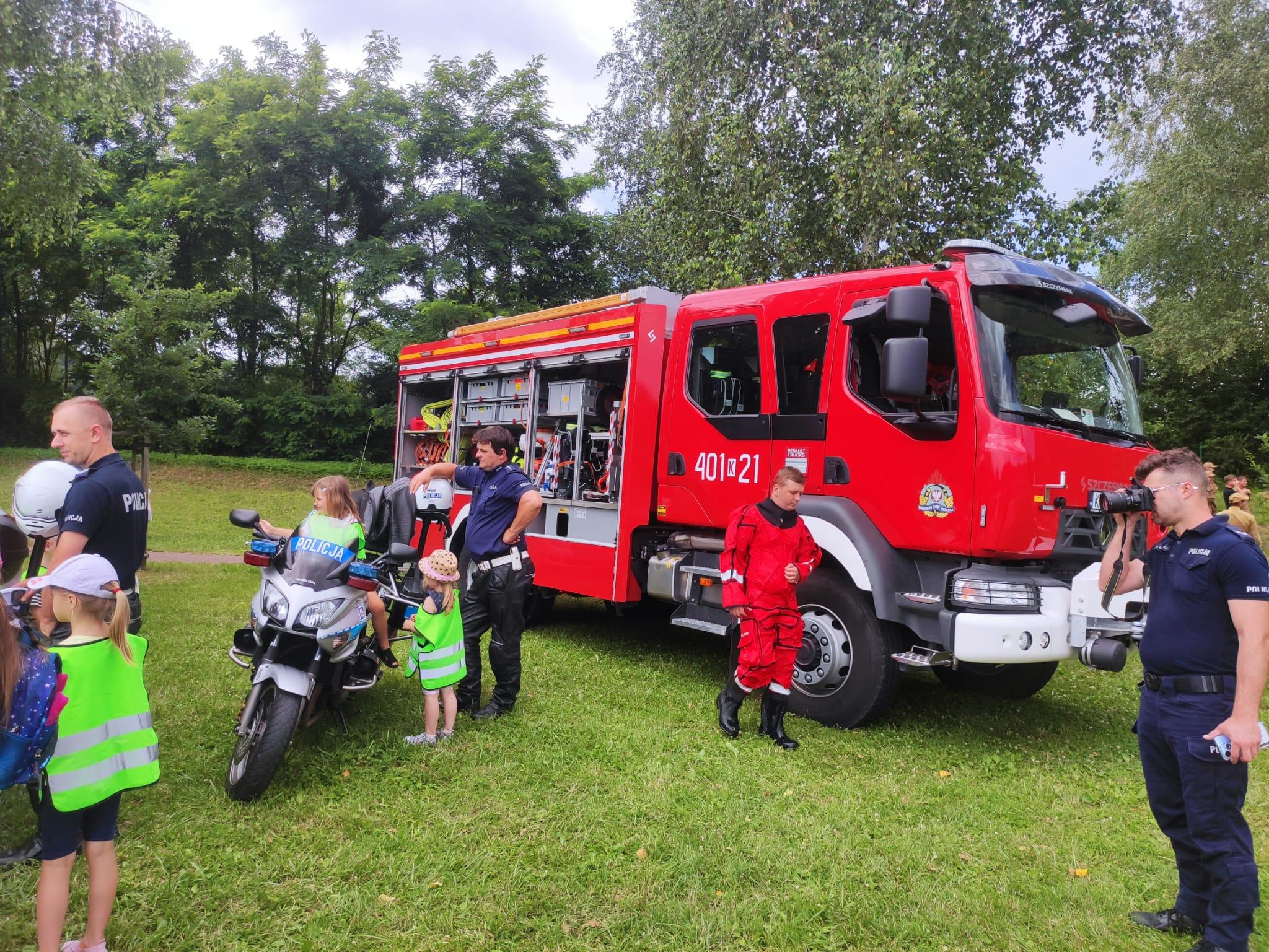„Kręci mnie bezpieczeństwo nad wodą” –strażacy i policjanci promowali bezpieczeństwo nad łapanowskim zalewem