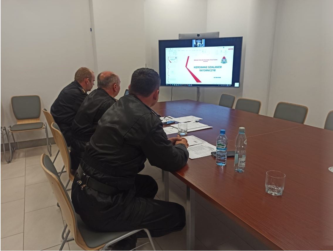 W dniu 17 grudnia 2021 r. przy wykorzystaniu systemu wideokonferencji Komenda Powiatowa PSP w Bochni przeprowadziła naradę operacyjno - szkoleniową z udziałem Komendantów Gminnych OSP, Naczelników Ochotniczych Straży Pożarnych z KSRG oraz pracowników UG/M zajmujących się sprawami ochrony przeciwpożarowej z terenu powiatu bocheńskiego.