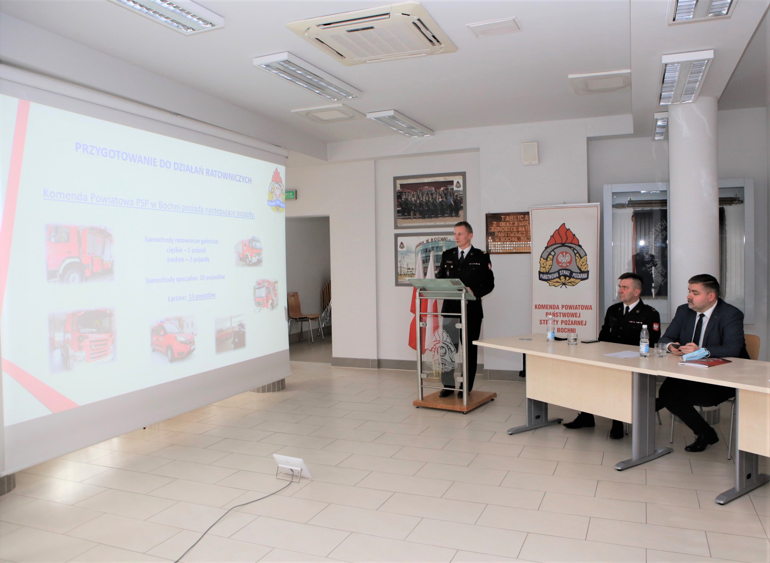 25 lutego 2022 r. w Komendzie Powiatowej Państwowej Straży Pożarnej w Bochni odbyła się odprawa roczna podsumowująca działalność w zakresie ochrony przeciwpożarowej na terenie powiatu bocheńskiego za rok 2021.