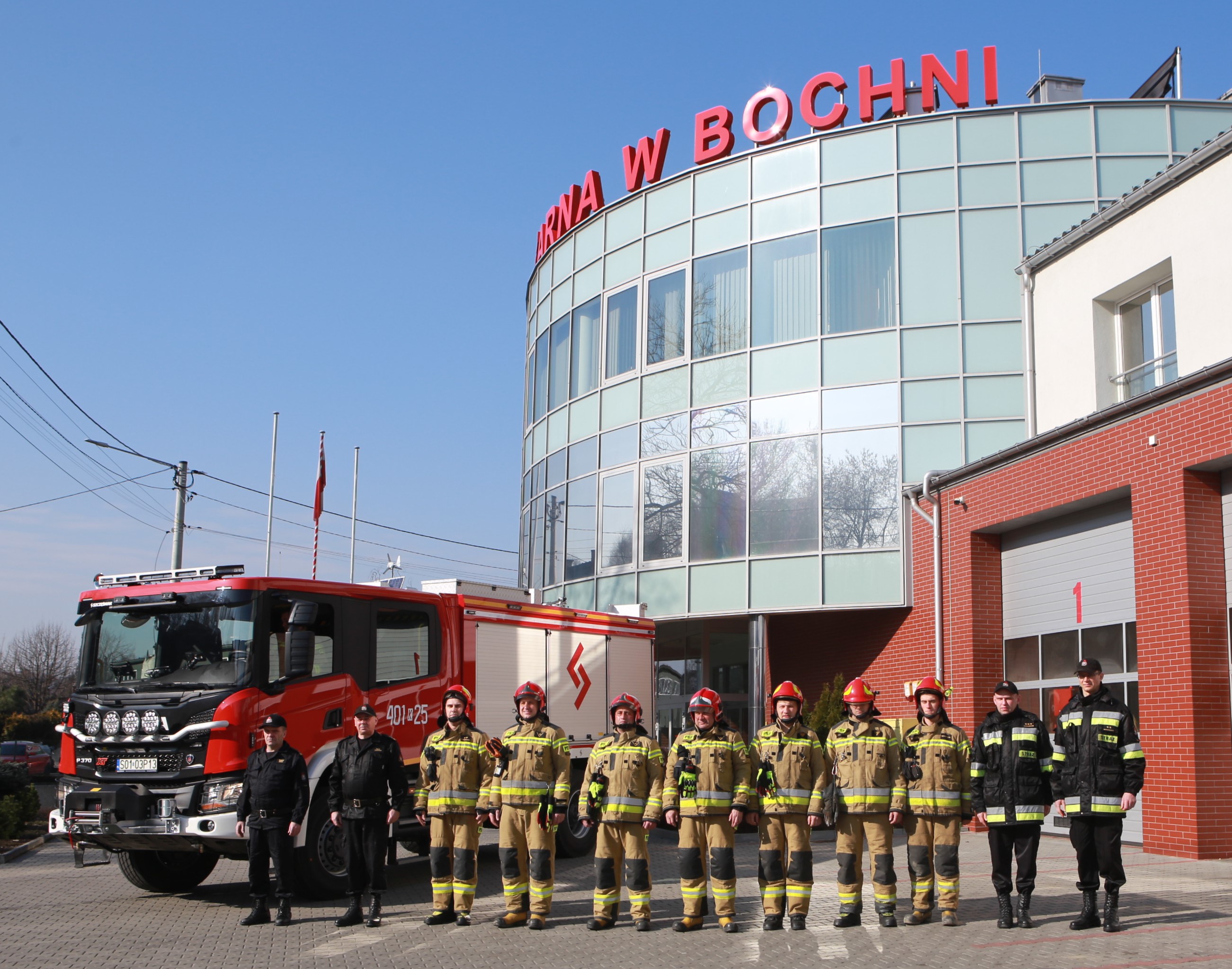 W dniu 28 lutego 2022 r. komisja powołana przez Małopolskiego Komendanta Wojewódzkiego PSP dokonała odbioru nowego ciężkiego samochodu ratowniczo-gaśniczego dla Komendy Powiatowej PSP w Bochni. Pojazd powstał na uterenowionym podwoziu SCANIA P370. Wyposażono go w zautomatyzowaną skrzynię biegów, zbiornik wody o pojemności 5000 dm3, zbiornik na środek pianotwórczy o pojemności 500 dm3, działko wodno-pianowe, linię szybkiego natarcia o długości 60 m, maszt oświetleniowy LED, wciągarkę elektryczną oraz inne wyposażenie pożarnicze. Samochód umożliwia przewóz 6 ratowników. Parametry dwuzakresowej autopompy Godiva umożliwiają uzyskanie wydajności przy niskim ciśnieniu (8 bar ) - 3500 dm³/ min. Natomiast wydajność wysokiego ciśnienia (40 bar) wynosi 468 dm³ / min. Obecnie, strażacy zapoznają się z nowym pojazdem, prowadzą ćwiczenia z obsługi autopompy, sprzętu i wyposażenia. GCBA 5/35 SCANIA P370 już wkrótce zostanie włączony do podziału bojowego i zastąpi obecnie użytkowany samochód GCBA 5/32. Koszt zakupu pojazdu wyniósł 1.099.620,00 PLN. Zakup został zrealizowany przez Komendę Wojewódzką Państwowej Straży Pożarnej w Krakowie.