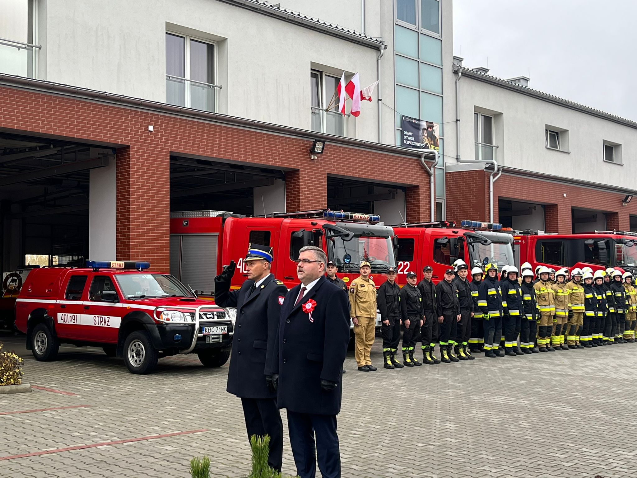Z okazji Narodowego Święta Niepodległości, w dniu 11 listopada 2023 r. o godzinie 12:00 na terenie Komendy Powiatowej Państwowej Straży Pożarnej w Bochni odbyła się uroczysta zbiórka. W jej trakcie w ramach akcji „Niepodległa do hymnu” podniesiono flagę państwową na maszt oraz odśpiewano hymn państwowy. W uroczystości wzięli udział: Pan Adam Korta Starosta Bocheński, bryg. Jacek Ryncarz Komendant Powiatowy Państwowej Straży Pożarnej w Bochni oraz strażacy pełniący służbę i strażacy z Ochotniczych Straży Pożarnych.