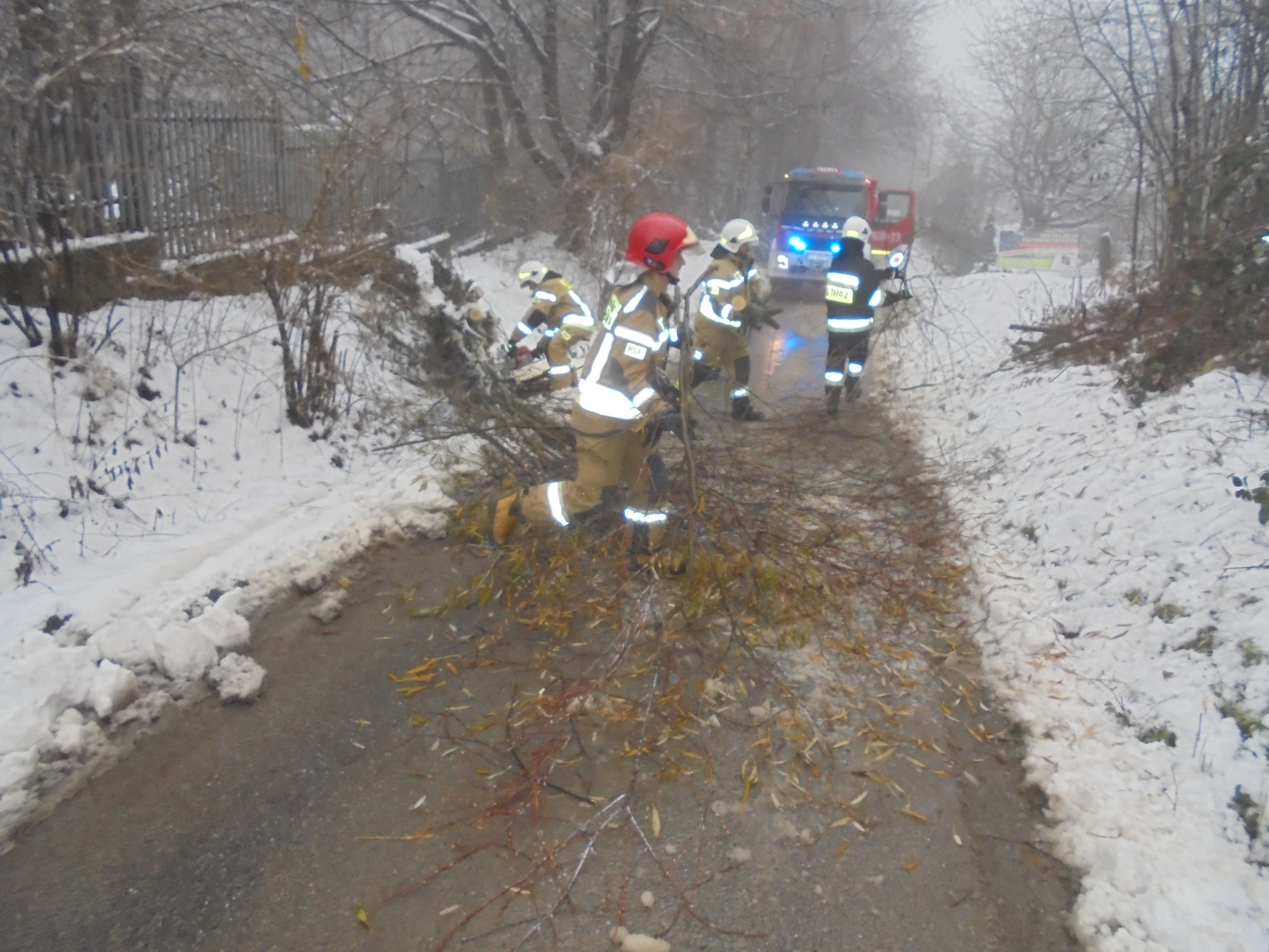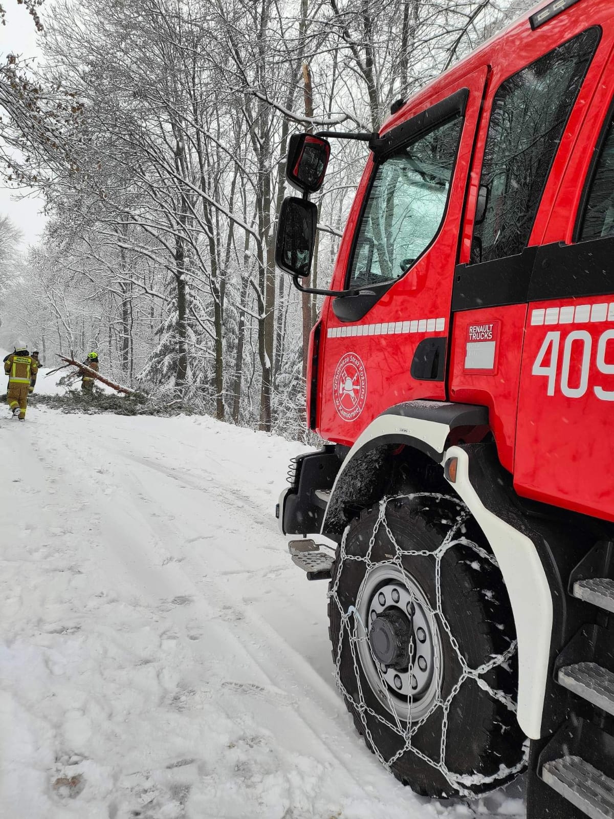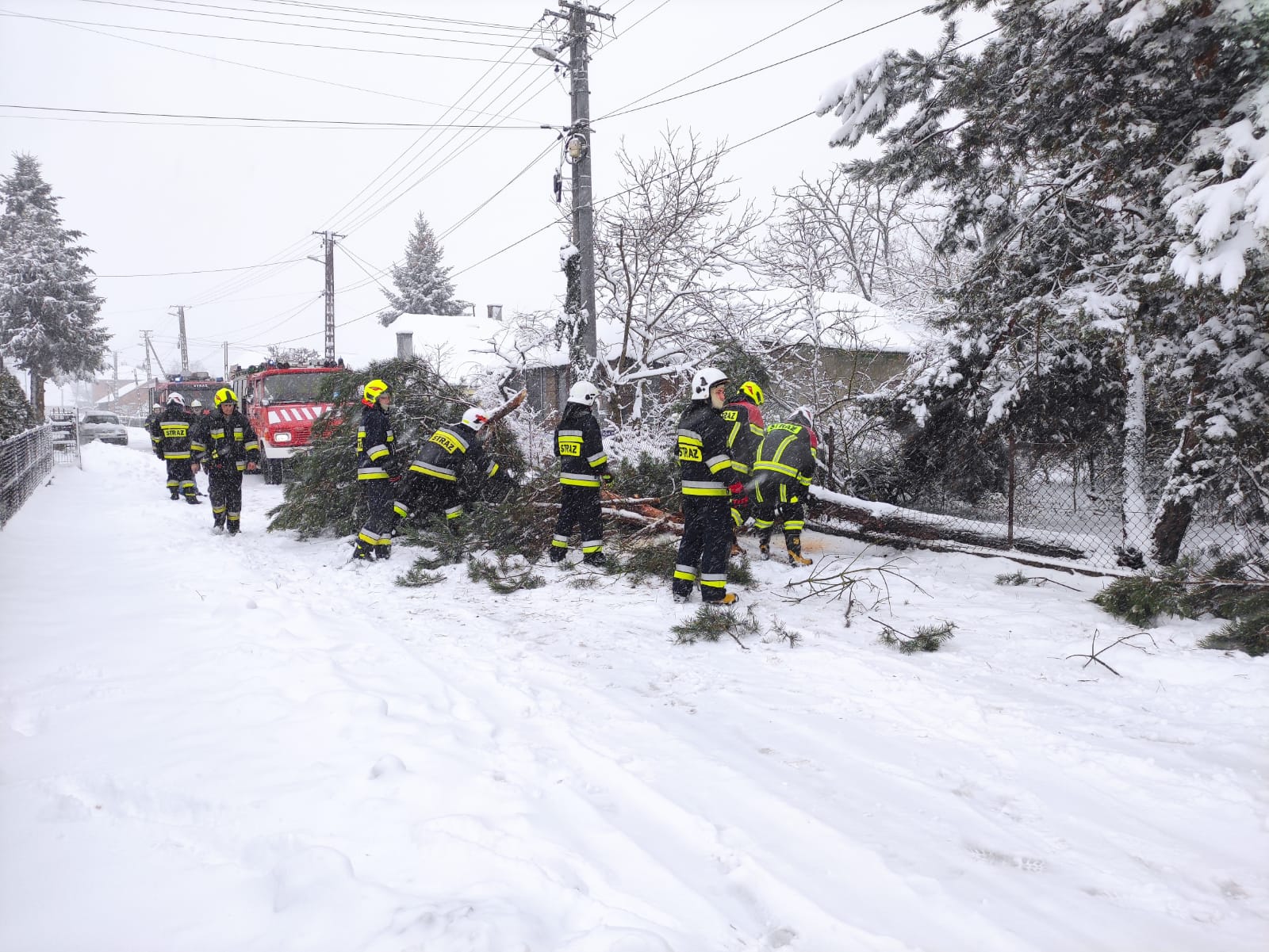 Powalane drzewa, kolizje i wypadki komunikacyjne na skutek intensywnych opadów śniegu.
