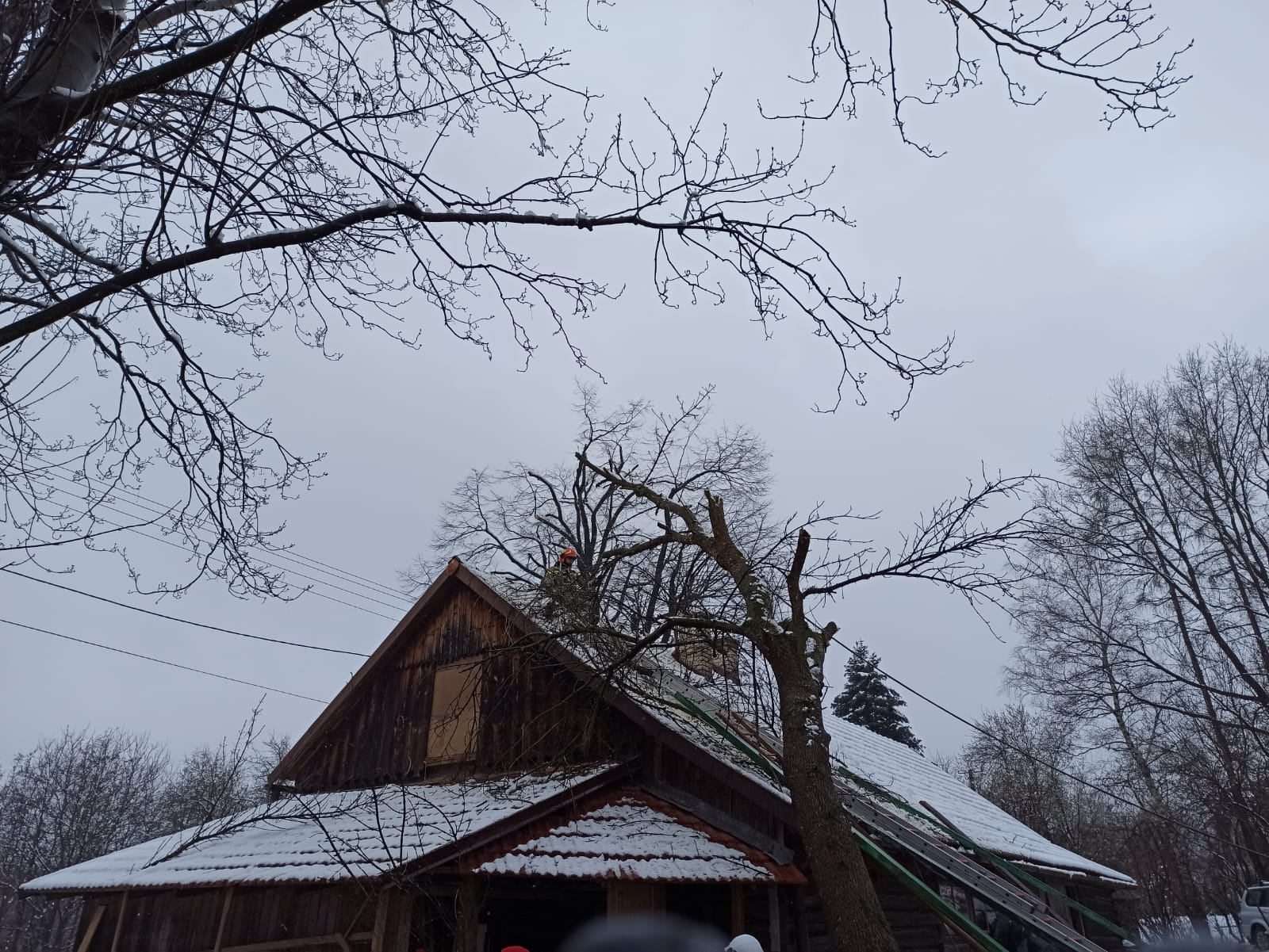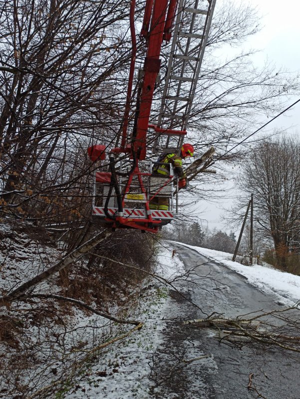 Powalane drzewa zablokowane drogi na skutek opadów śniegu