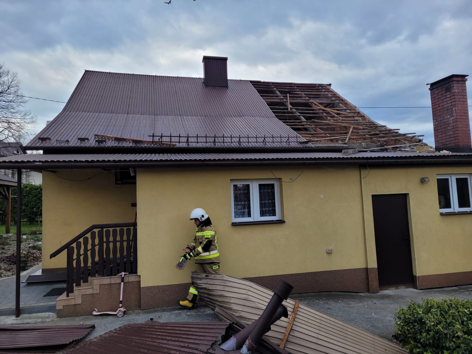 Powalone drzewa, zerwane dachy, uszkodzone linie energetyczne na skutek silnych wiatrów.