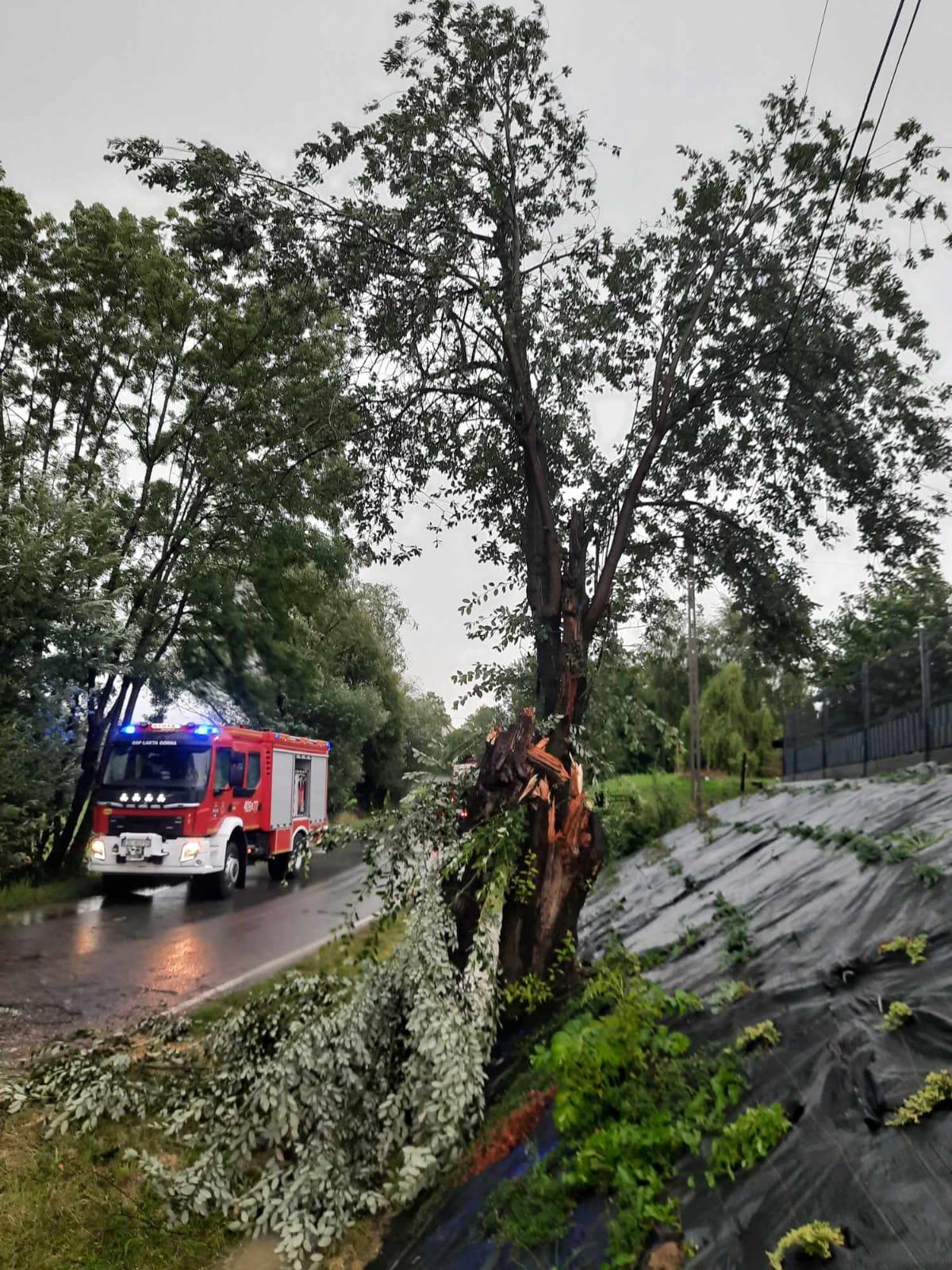 Powalone drzewa, zerwane dachy, uszkodzone linie energetyczne na skutek silnych wiatrów. 16 - 17.07.24