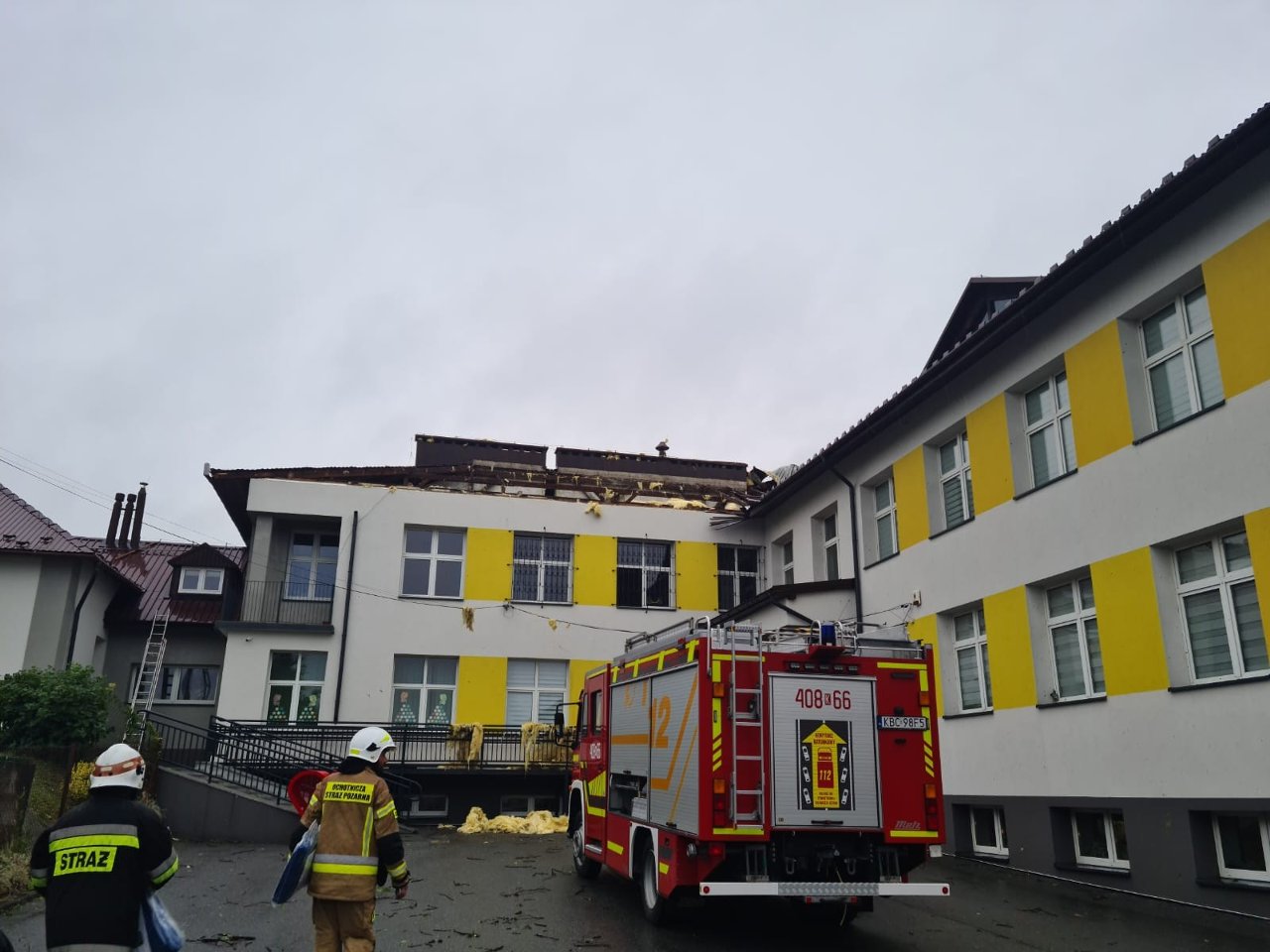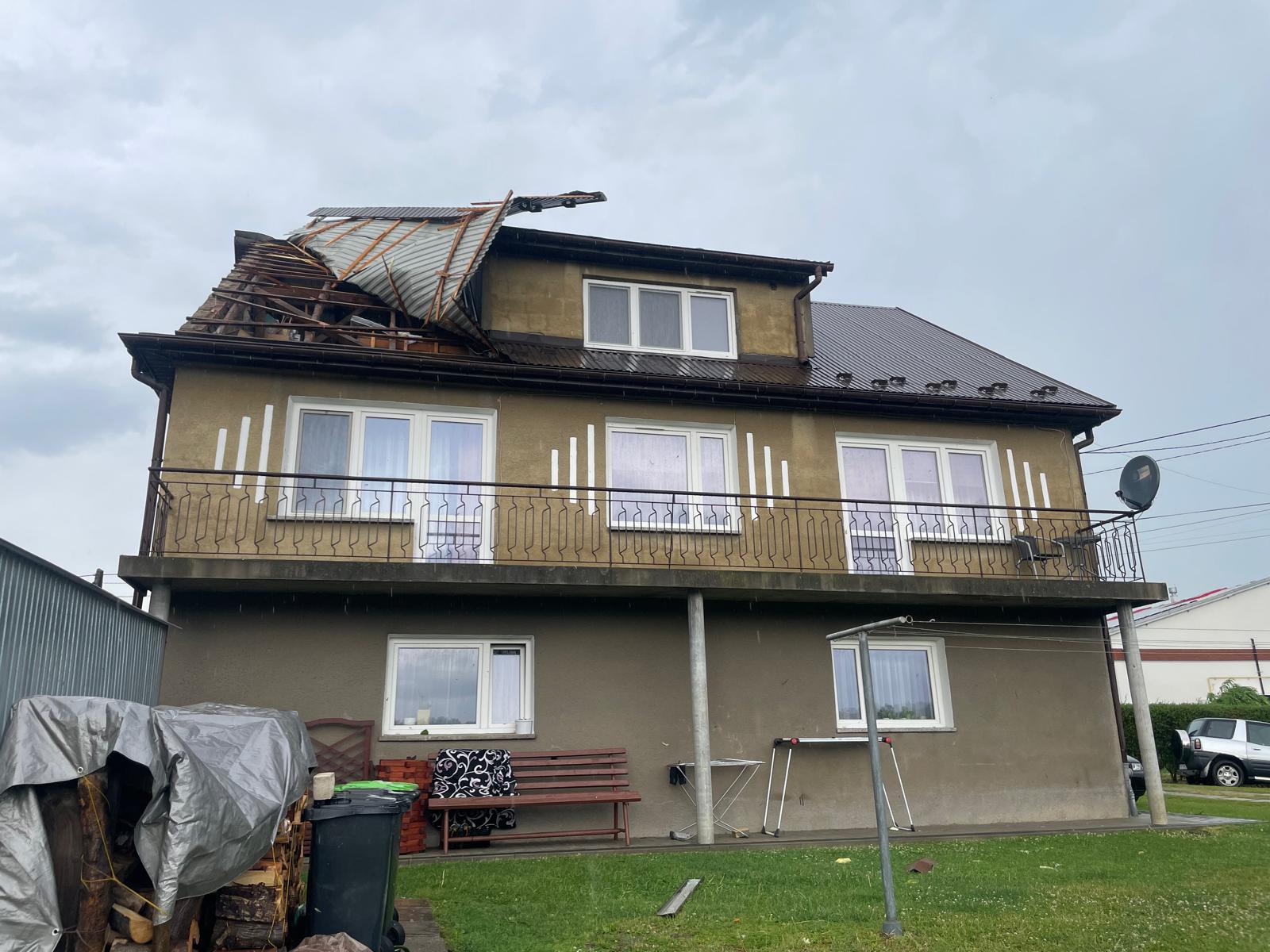 Powalone drzewa, zerwany dachy, uszkodzone linie energetyczne na skutek silnych wiatrów