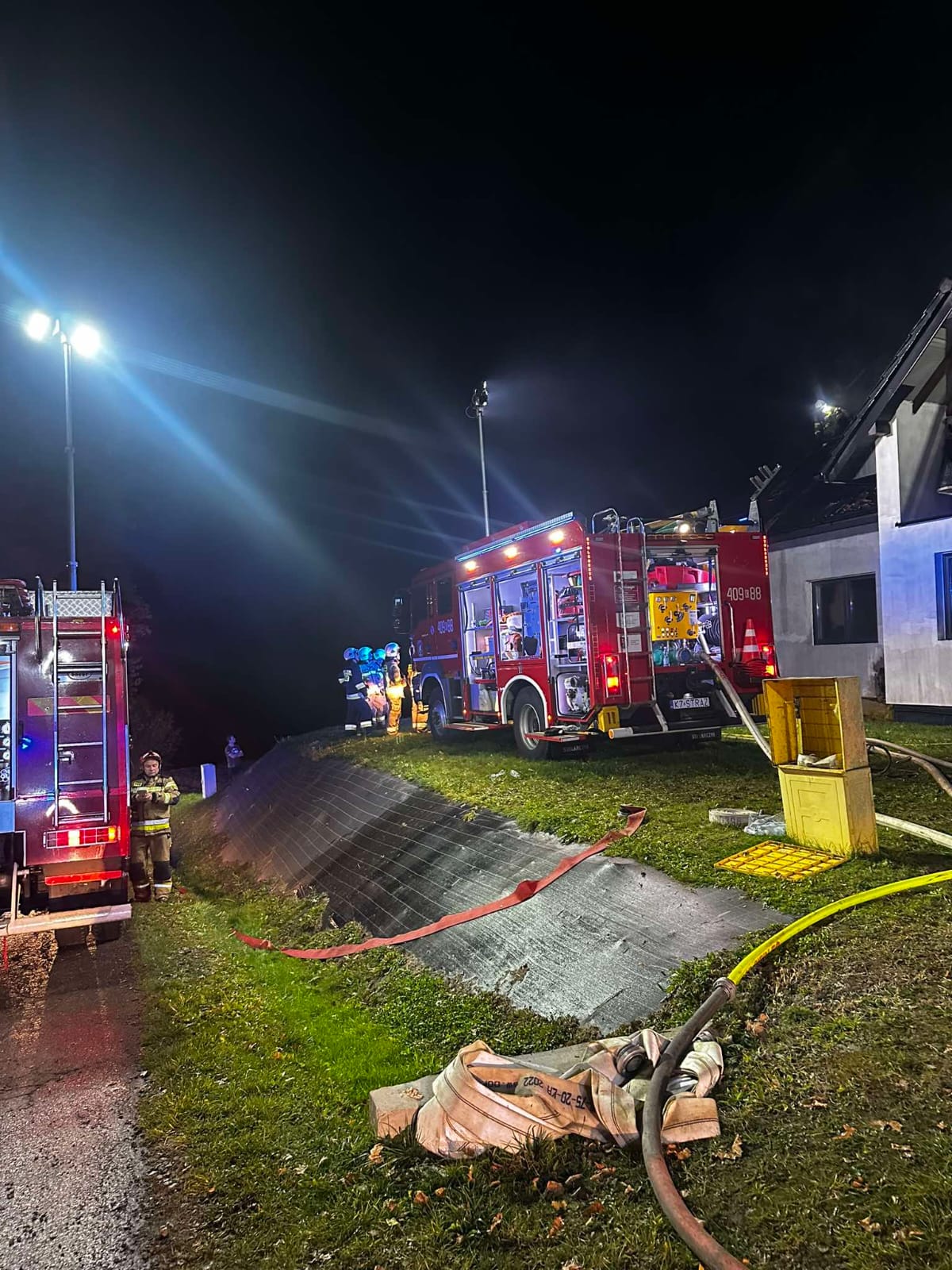 W dniu 27 października 2024 roku około godziny 02:30 w miejscowości Grabina gmina Bochnia doszło do pożaru w budynku mieszkalnym. Po przeprowadzeniu rozpoznania stwierdzono, że pożarem objęta jest elewacja ze styropianu na dwóch ścianach budynku oraz cała konstrukcja dachu. Brak osób poszkodowanych. Działania jednostek ochrony przeciwpożarowej polegały na podaniu trzech dwóch prądów wody w natarciu na palący się budynek. Po odcięciu zasilania w energię elektryczną na tablicy rozdzielczej, wprowadzono rotę w aparatach OUO do środka z trzecim prądem wody. W kolejnym etapie podano czwarty prąd wody z działka samochodu SHD 24. Przybyłe na miejsce zdarzenia pogotowie energetyczne dodatkowo odłączyło przyłącz elektryczny do budynku. Po lokalizacji pożaru przystąpiono do rozebrania spalonej konstrukcji dachu grożącej zawaleniem i dogaszania pożaru. Całe pogorzelisko zostało sprawdzone przy użyciu kamery termowizyjnej. Działania ratowniczo - gaśnicze prowadziło łącznie 6 zastępów w tym: 3 zastępy z JRG Bochnia, 1 zastęp z OSP Siedlec, 1 zastęp z OSP Sobolów, 1 zastęp z OSP Królówka, patrol Policji, Pogotowie Gazowe, Pogotowie Energetyczne. Przyczyny zdarzenia ustala Policja.
