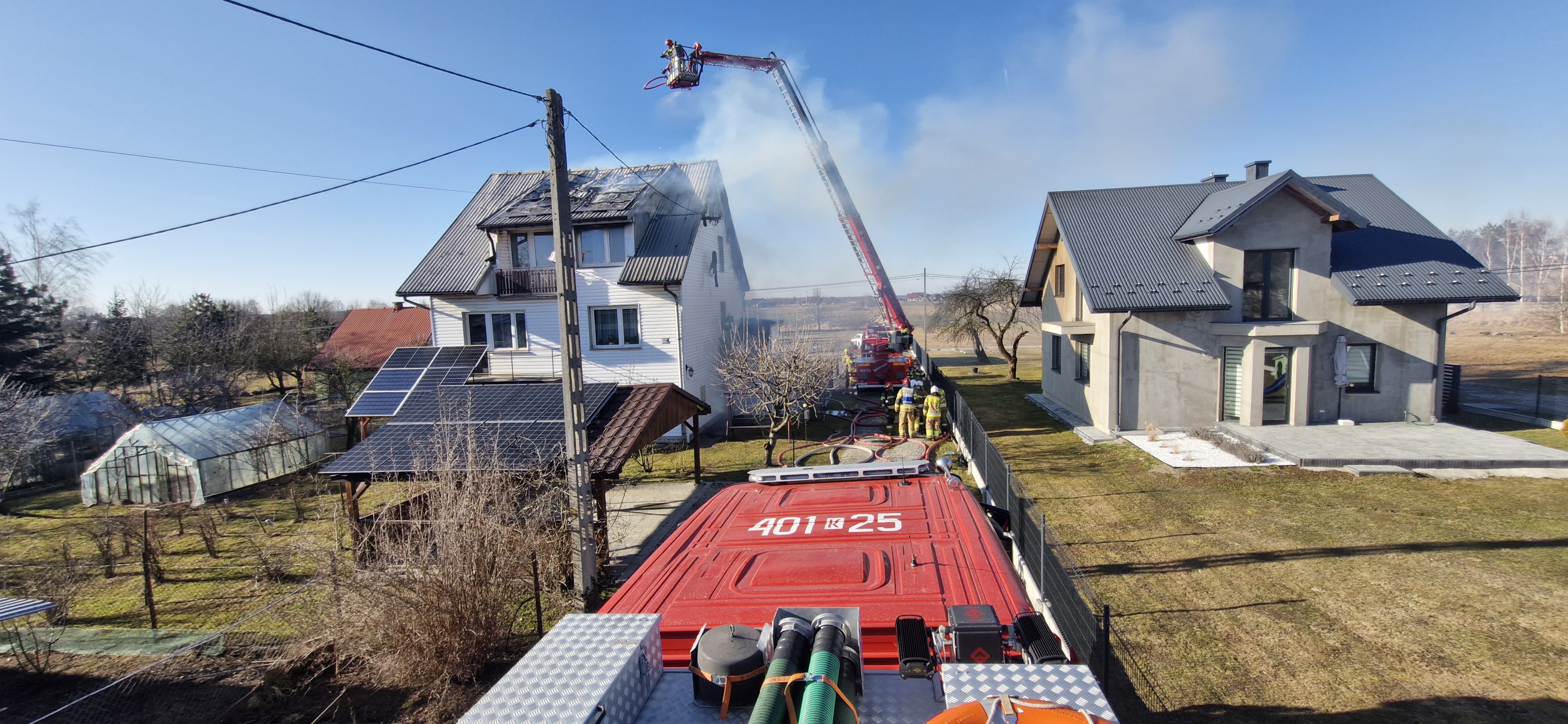 W dniu 06 marca 2025 roku około godziny 14:25 w miejscowości Rzezawa ul. Bocheńska doszło do pożaru budynku mieszkalnego. Po przeprowadzeniu rozpoznania stwierdzono, że pożarem objęte jest całe poddasze, ściana budynku, instalacja fotowoltaiczna zamontowana na dachu oraz wiata znajdująca się przy budynku w której znajdował się magazyn energii elektrycznej w postaci 16 akumulatorów kwasowych, pompa ciepła oraz dwie butle jedna z acetylenem druga z tlenem. Obydwie butle zostały poddane działaniu płomieni. Żadna osoba zamieszkująca budynek nie uległa wypadkowi i nie wymagała pomocy medycznej.