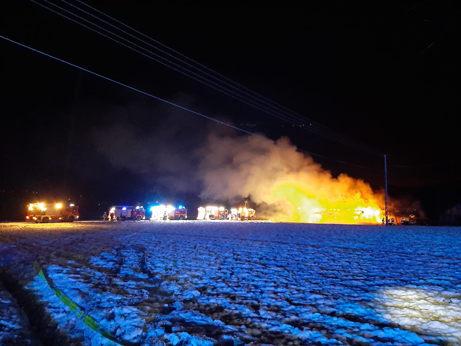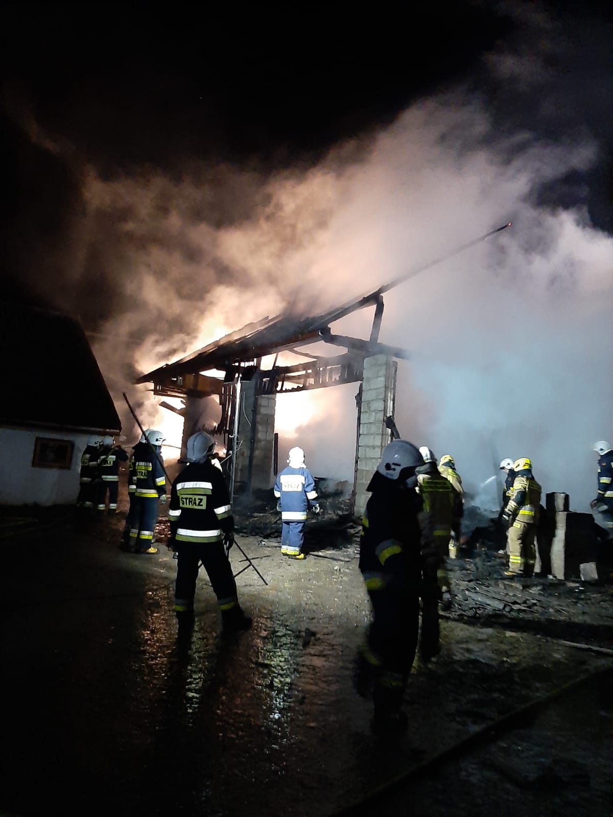 W dniu 7 kwietnia 2021 roku o godzinie 22:17 do Stanowiska Kierowania Komendanta Powiatowego w Bochni wpłynęło zgłoszenie, że w miejscowości Grabie gmina Łapanów, pali się stodoła. W pierwszym rzucie do zdarzenia zostały zadysponowane dwa zastępy z JRG Bochnia oraz zastępy Ochotniczej Straży Pożarnej z Łapanowa, Tarnawy, Wolicy, Lubomierza. Po około 15 minutach zostały zadysponowane dodatkowe siły i środki z jednostek ze Zbydniowa, Sobolowa i Leszczyny. Po przybyciu pierwszych zastępów na miejsce zdarzenia i przeprowadzeniu rozpoznania stwierdzono, że pali się stodoła w gospodarstwie rolnym. Pożarem objęty jest cały budynek wraz z wyposażeniem. Zagrożony jest pobliski budynek mieszkalny i stajnia. Brak osób poszkodowanych. Działania gaśnicze polegały na podaniu dwóch prądów wody w obronie na zagrożone budynki .Podjęto także wraz z właścicielem ewakuację bydła w ilości 10 szt. z zagrożonej pożarem stajni. Następnie po dojechaniu kolejnych zastępów dodatkowo podano dwa prądy wody w natarciu na palącą się stodołę. Ze względu na brak wody w gminnej sieci hydrantowej konieczne było dostarczanie wody z zorganizowanego na rzece punktu czerpania wody w miejscowości Grabie. Wodę częściowo przepompowywano także z pobliskiego oczka wodnego zlokalizowanego na działce sąsiada. Po rozebraniu całej konstrukcji, wyniesieniu siana i słomy z budynku i przelaniu wszystkiego wodą sprawdzono pogorzelisko. Na miejsce zdarzenia przybył Oficer Operacyjny Powiatu mł. bryg. Paweł Matyasik. Wyniku pożaru uległo zniszczeniu: cała konstrukcja stodoły, dwa ciągniki rolnicze marki Ursus C330 i Massey Ferguson 255. Działania ratowniczo – gaśnicze łącznie trwały 4 godziny 44 minuty. W działania tych brało udział 13 zastępów Straży Pożarnej w łącznej sile 80 strażaków – ratowników.
