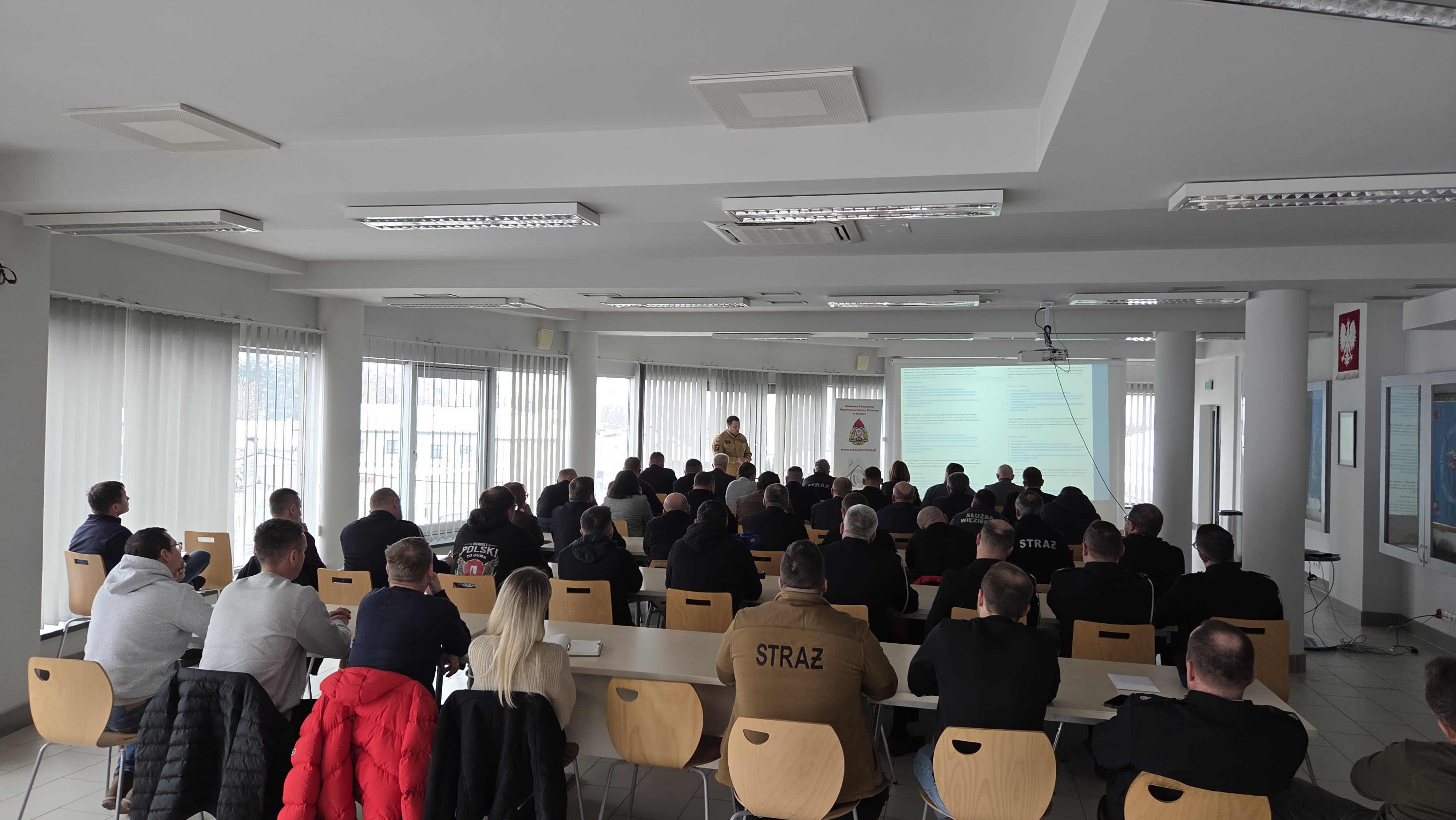 W siedzibie Komendy Powiatowej Państwowej Straży Pożarnej w Bochni w dniu 17 lutego 2026 roku odbyło się spotkanie z udziałem Komendanta Powiatowego PSP w Bochni st. bryg. Pawła Matyasika, Zastępcy Komenda Powiatowego Państwowej Straży Pożarnej w Bochni st. kpt. Bartłomieja Łąckiego, przedstawicieli samorządów z terenu powiatu bocheńskiego, komendantów gminnych OSP terenu powiatu bocheńskiego oraz prezesów jednostek OSP włączonych do ksrg oraz części jednostek osp nie włączonych do ksrg z terenu powiatu.