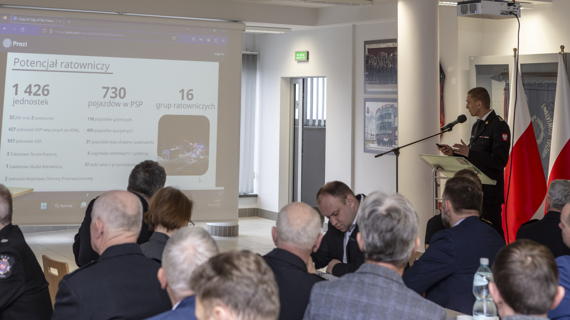 Po zakończeniu tej części narady Komendant Powiatowy Państwowej Straży Pożarnej w Bochni bryg. Jacek Ryncarz w formie prezentacji podsumował realizowane zadania w roku ubiegłym, przedstawił stan ochrony przeciwpożarowej na terenie powiatu bocheńskiego a także zadania, które zostały zrealizowane w roku 2022. Komendant Powiatowy PSP w Bochni podziękował wszystkim obecnym za wsparcie jakie otrzymują bocheńscy strażacy
