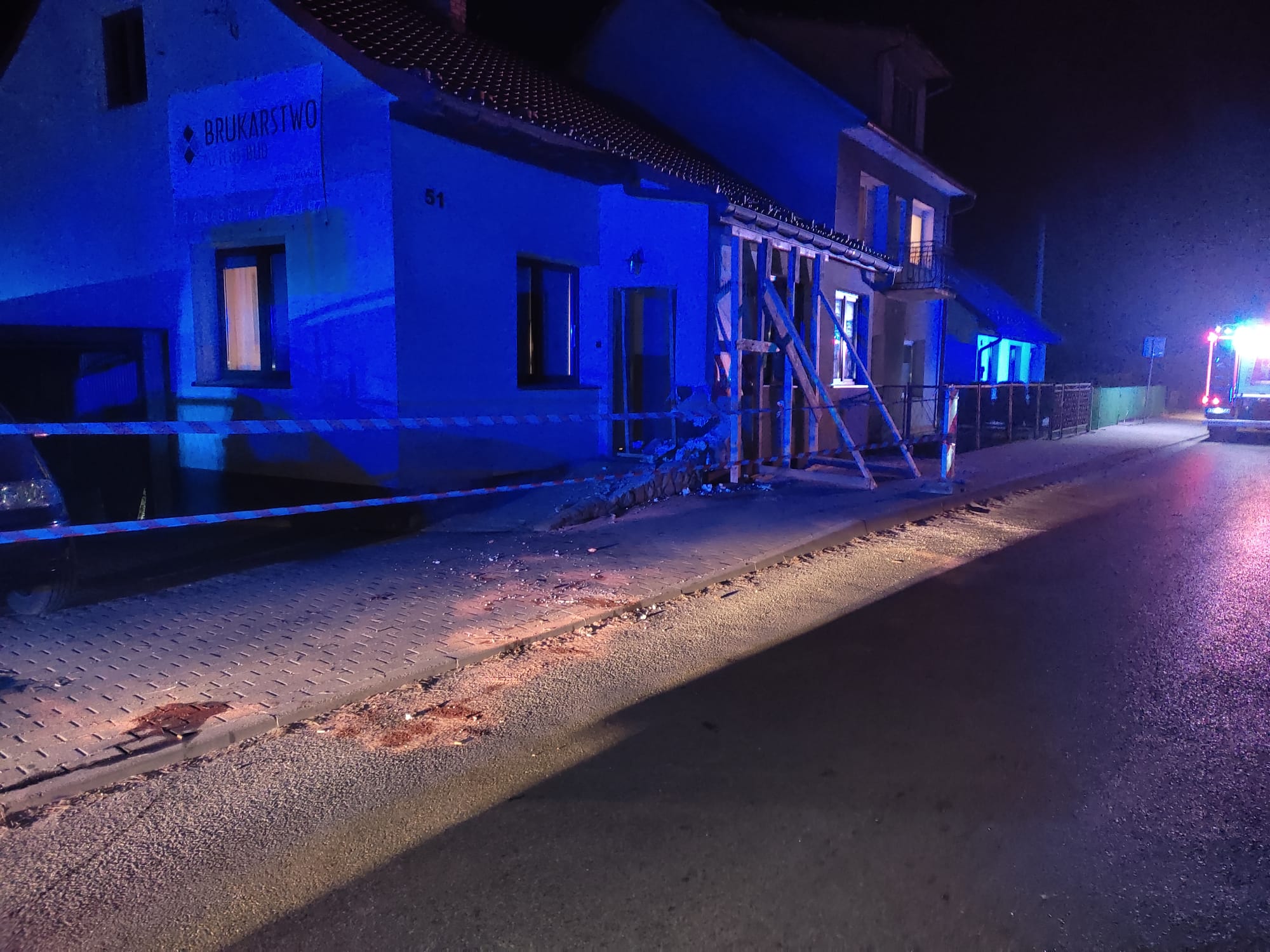 Samochód osobowy uderzył w budynek mieszkalny w miejscowości Łapanów