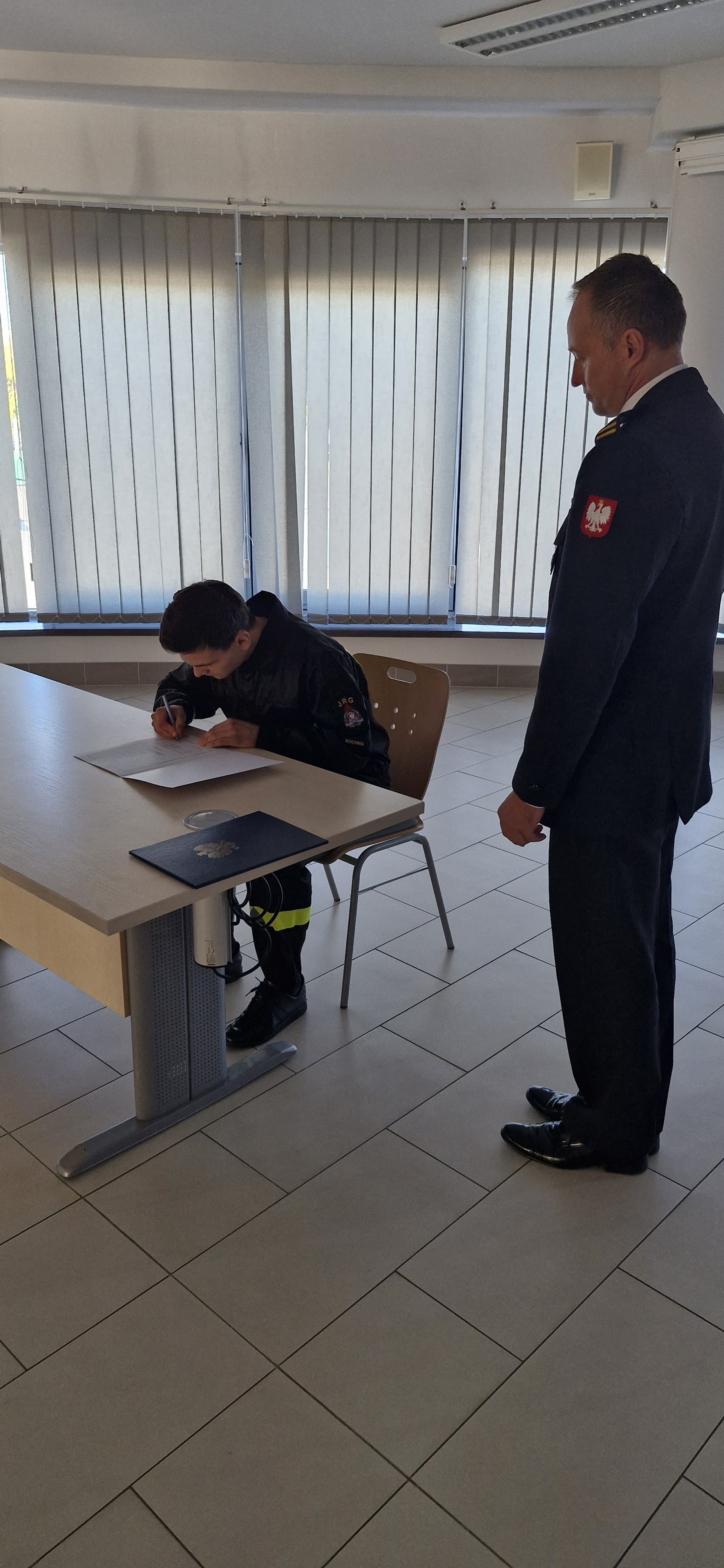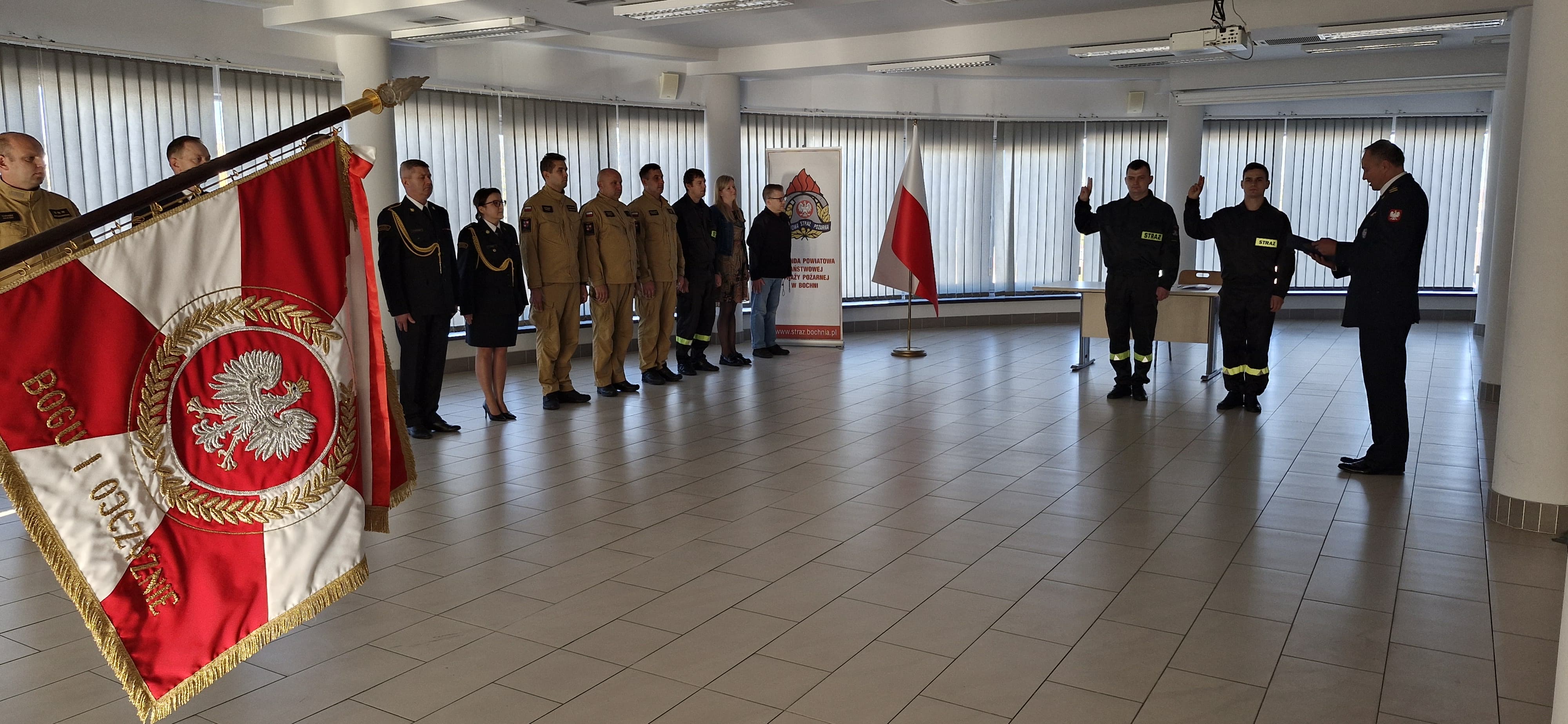 08 października 2024 roku w siedzibie Komendy Powiatowej PSP w Bochni str. Michał Dźwigaj oraz str. Jarosław Zaleński jako nowo przyjęci strażacy do służby kandydackiej w szeregach Państwowej Straży Pożarnej złożyli ślubowanie.