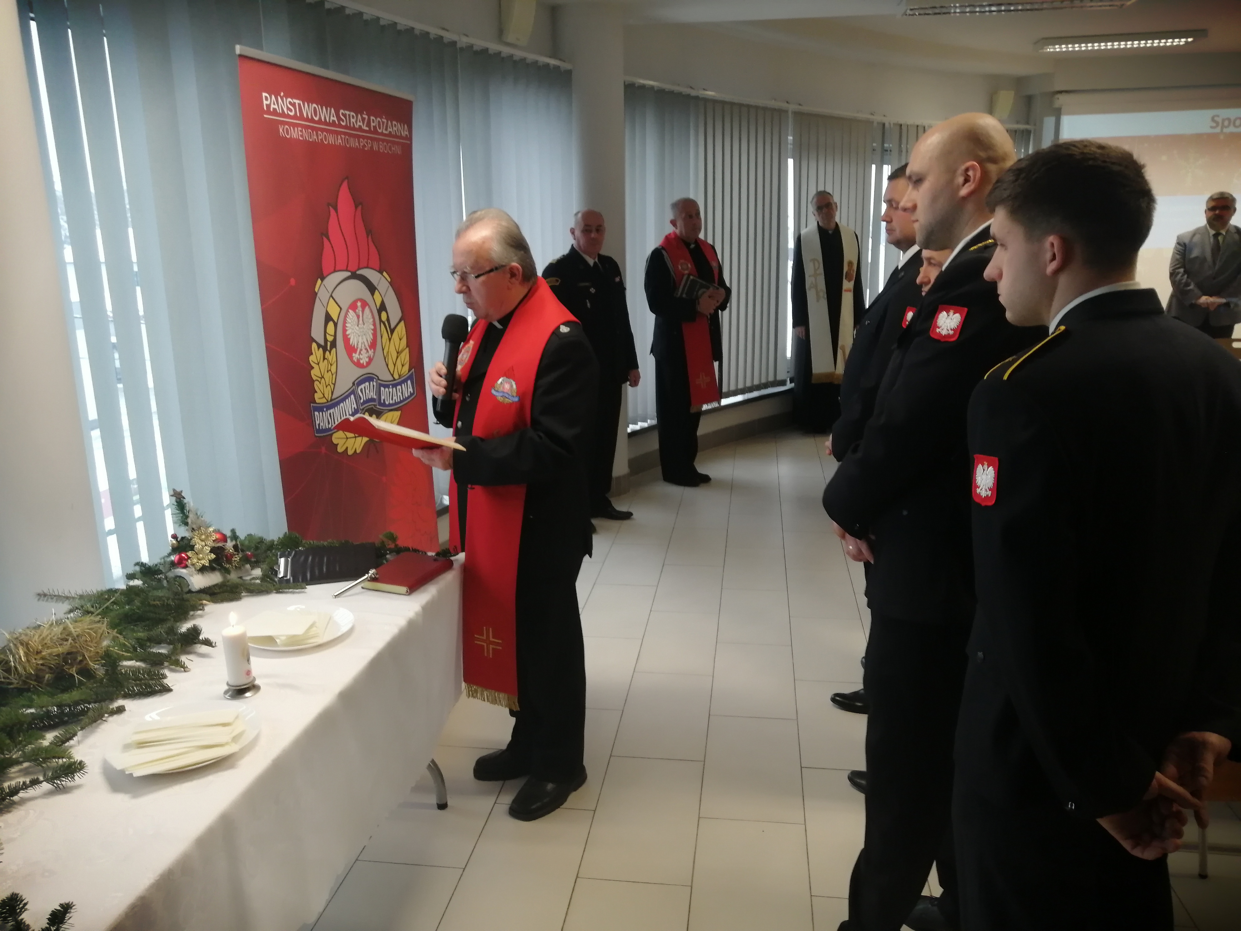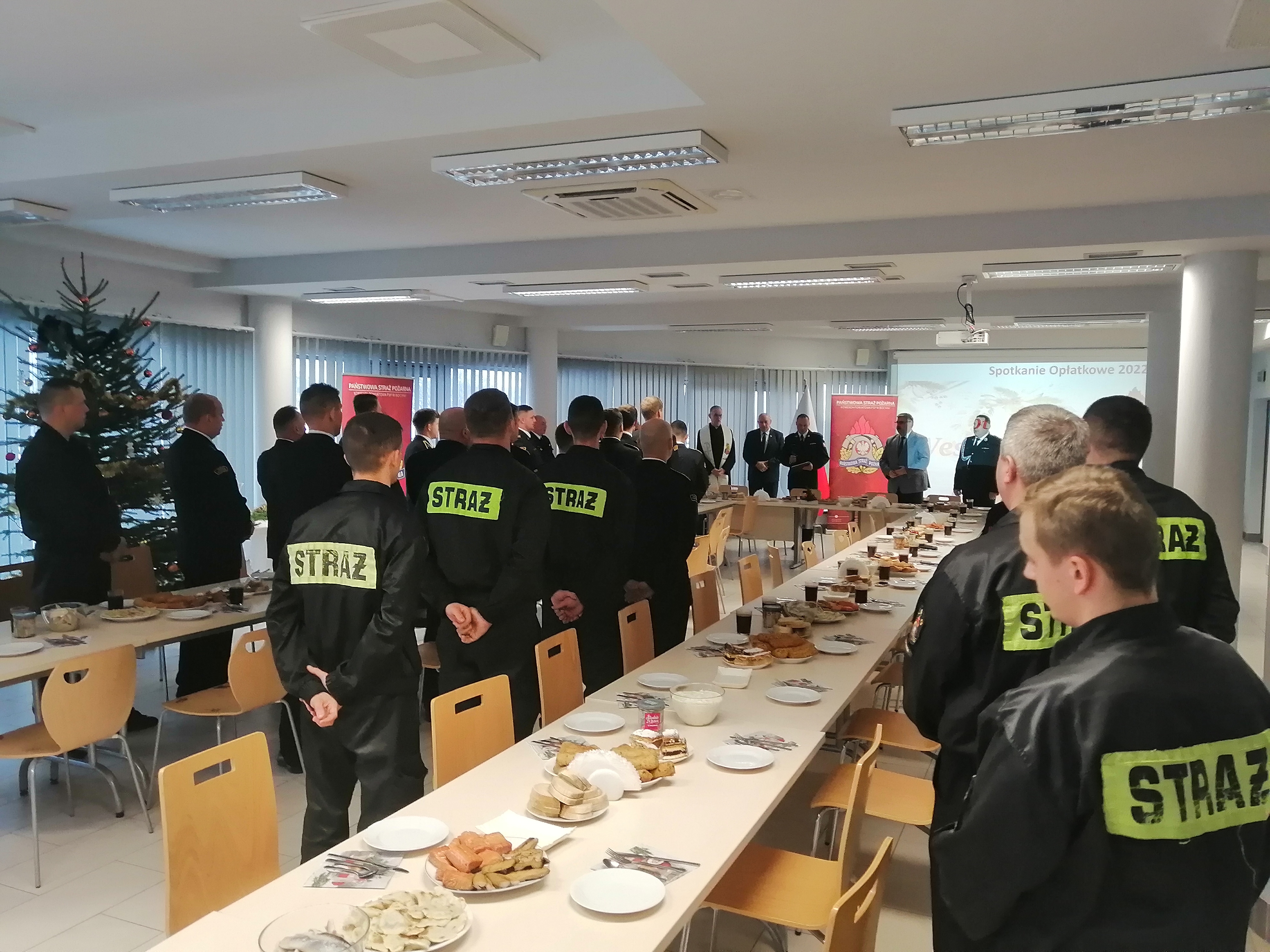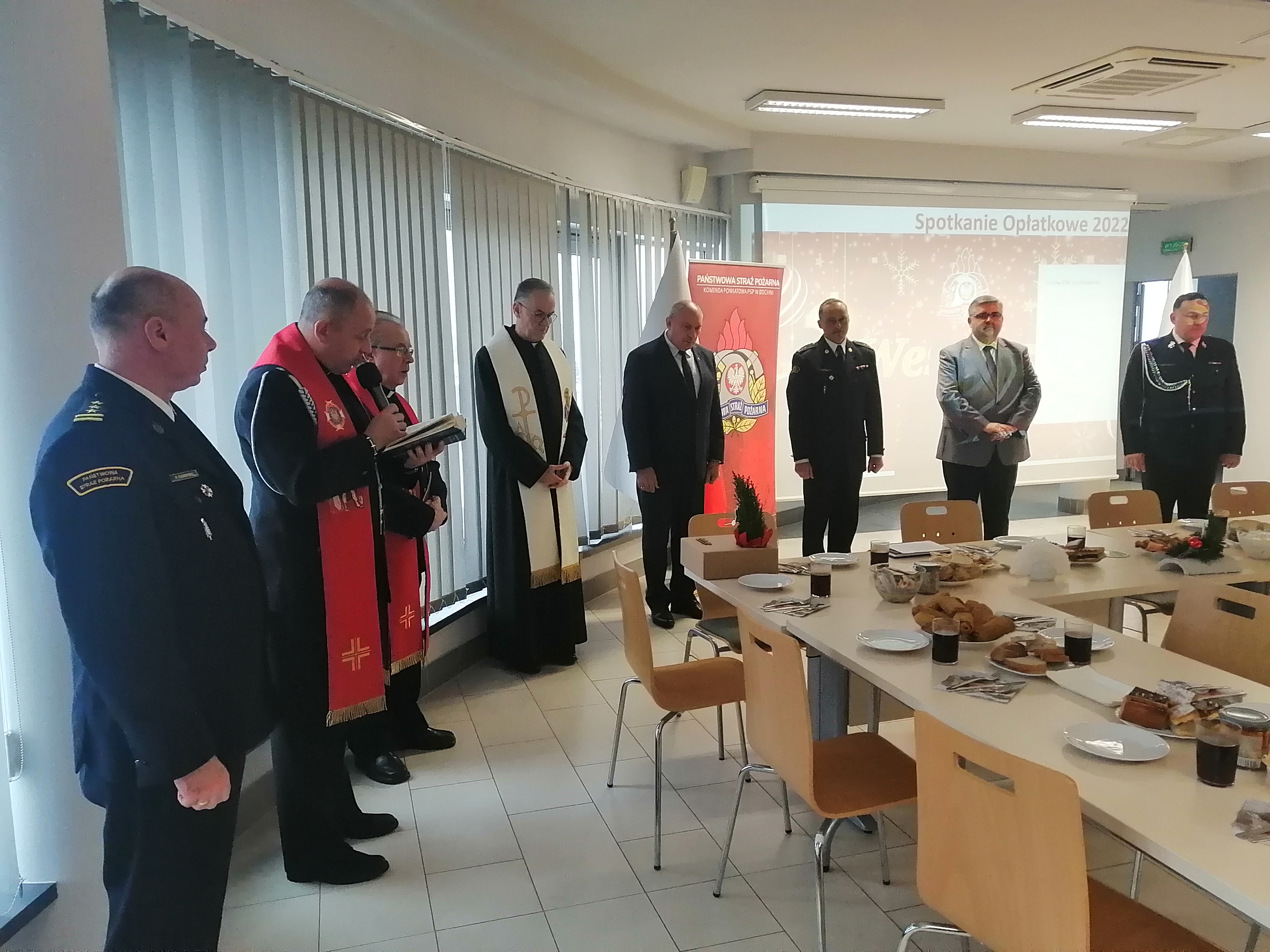 W dniu 16 grudnia 2022 r. w sali konferencyjnej Komendy Powiatowej Państwowej Straży Pożarnej w Bochni odbyło się wigilijne spotkanie opłatkowe, w którym uczestniczyli funkcjonariusze i pracownicy cywilni Państwowej Straży Pożarnej w Bochni oraz zaproszeni goście.