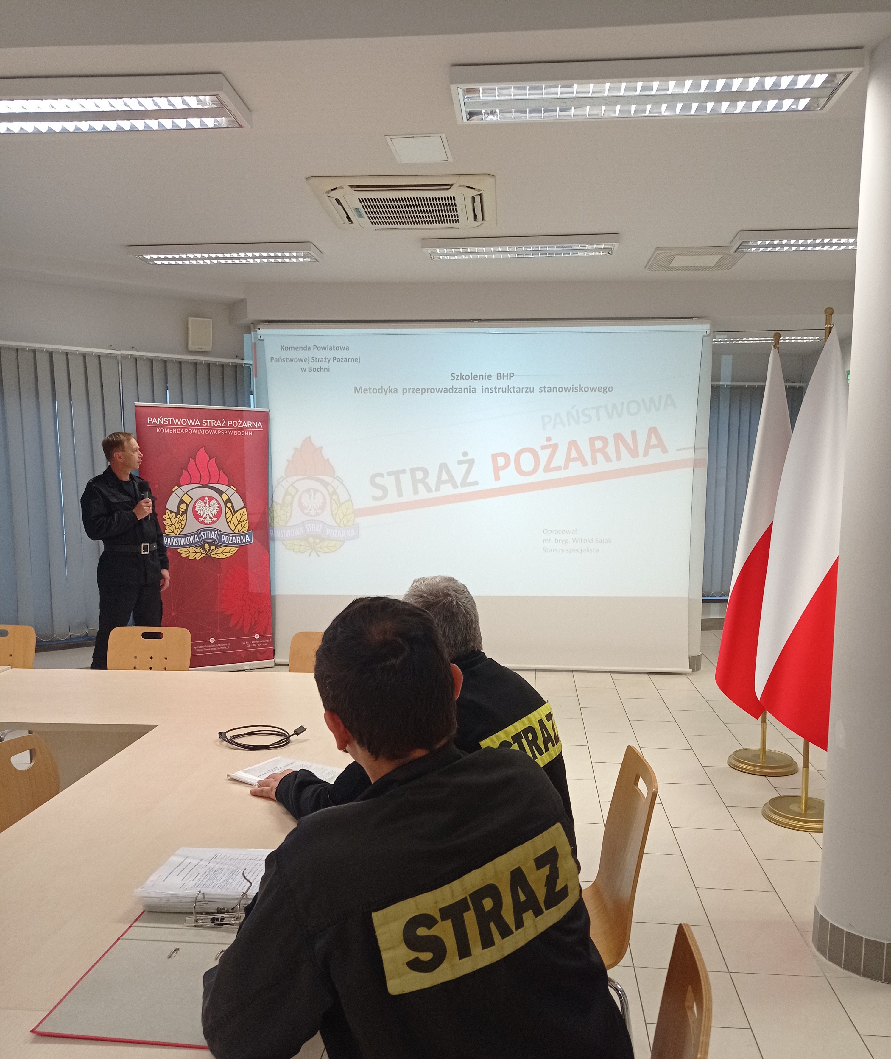 14 Grudnia 2022 roku w siedzibie Komendy Powiatowej PSP w Bochni odbyło się stacjonarne szkolenie BHP naczelników Ochotniczych Straży Pożarnych w zakresie metodyki przeprowadzania instruktażu stanowiskowego. Zrealizowano je w oparciu o program szkolenia zatwierdzony przez Komendanta Głównego Państwowej Straży Pożarnej. W szkoleniu tym uczestniczyło 49 naczelników OSP z jednostek terytorialnie podległych KP PSP w Bochni. Szkolenie prowadził Komendant Powiatowy PSP w Bochni - bryg. Jacek Ryncarz oraz mł. bryg. Witold Sajak.