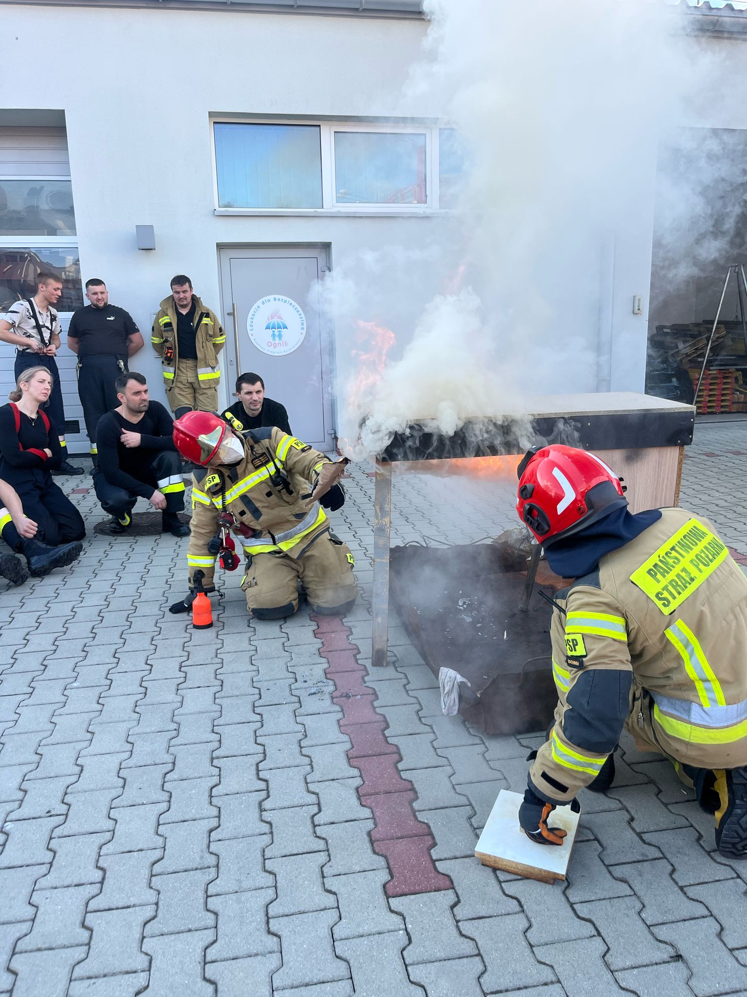 Podczas szkolenia zostały przedstawione następujące zagadnienia: operowanie prądami gaśniczymi, procedura wejścia do pomieszczeń, poruszanie się rot w strefie zadymienia, chłodzenie gazów pożarowych, wykorzystanie przez roty gaśnicze kamery termowizyjnej. Zaprezentowano pokaz zjawisk pożarowych w małej skali na trzech modelach drewnianych „domków”. Podczas pokazu strażacy obserwowali zjawiska występujące w czasie pożaru takie jak: rozgorzenie, wsteczny ciąg płomieni, zapalanie się gazów pożarowych, piroliza.