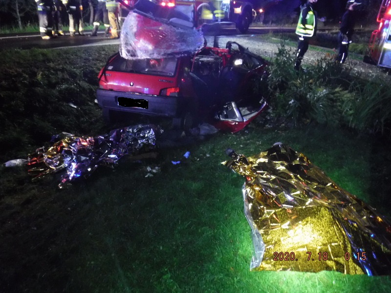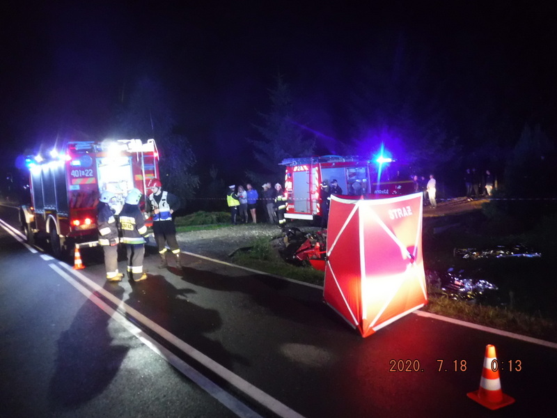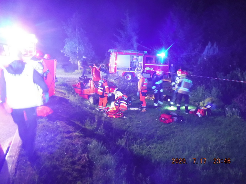 Dnia 17. 07.2020 o godzinie 23:15 do Stanowiska Kierowania Komendanta Powiatowego PSP w Bochni wpłynęła informacja o tym, że w miejscowości Baczków samochód osobowy, którym jechały cztery osoby, wypadł z drogi i uderzył w betonowy mostek .