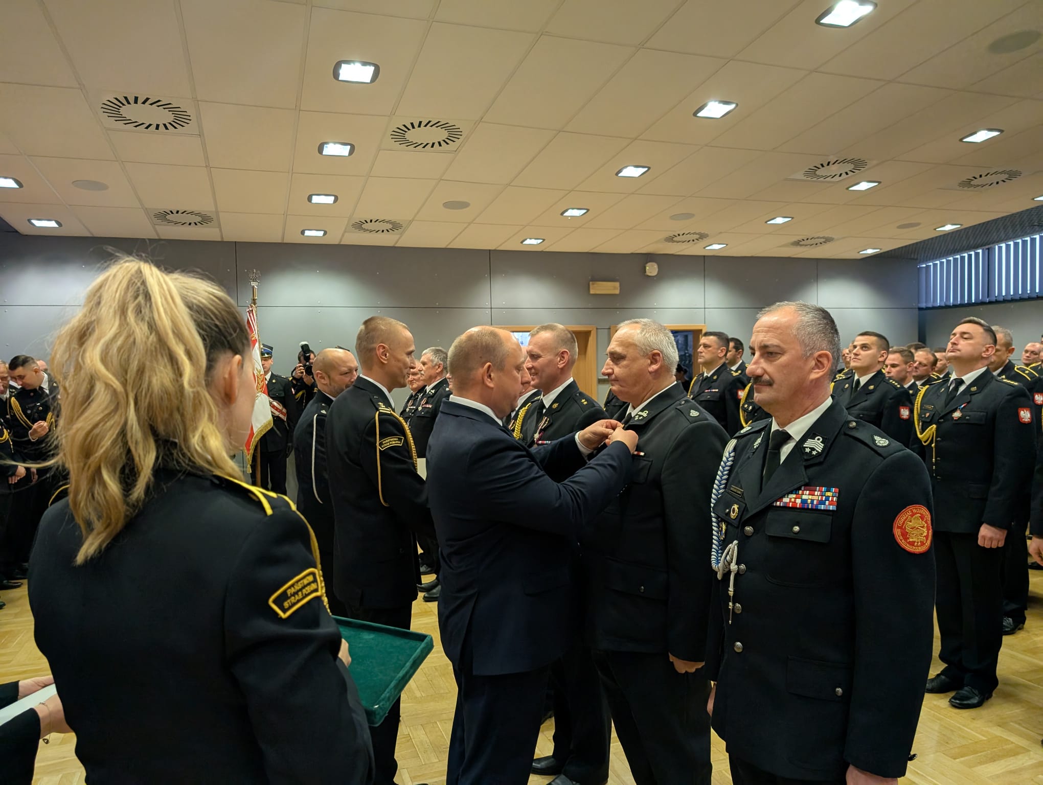 st. kpt. Artur Sroka - brązowa odznaka zasłużony dla ochrony przeciwpożarowej