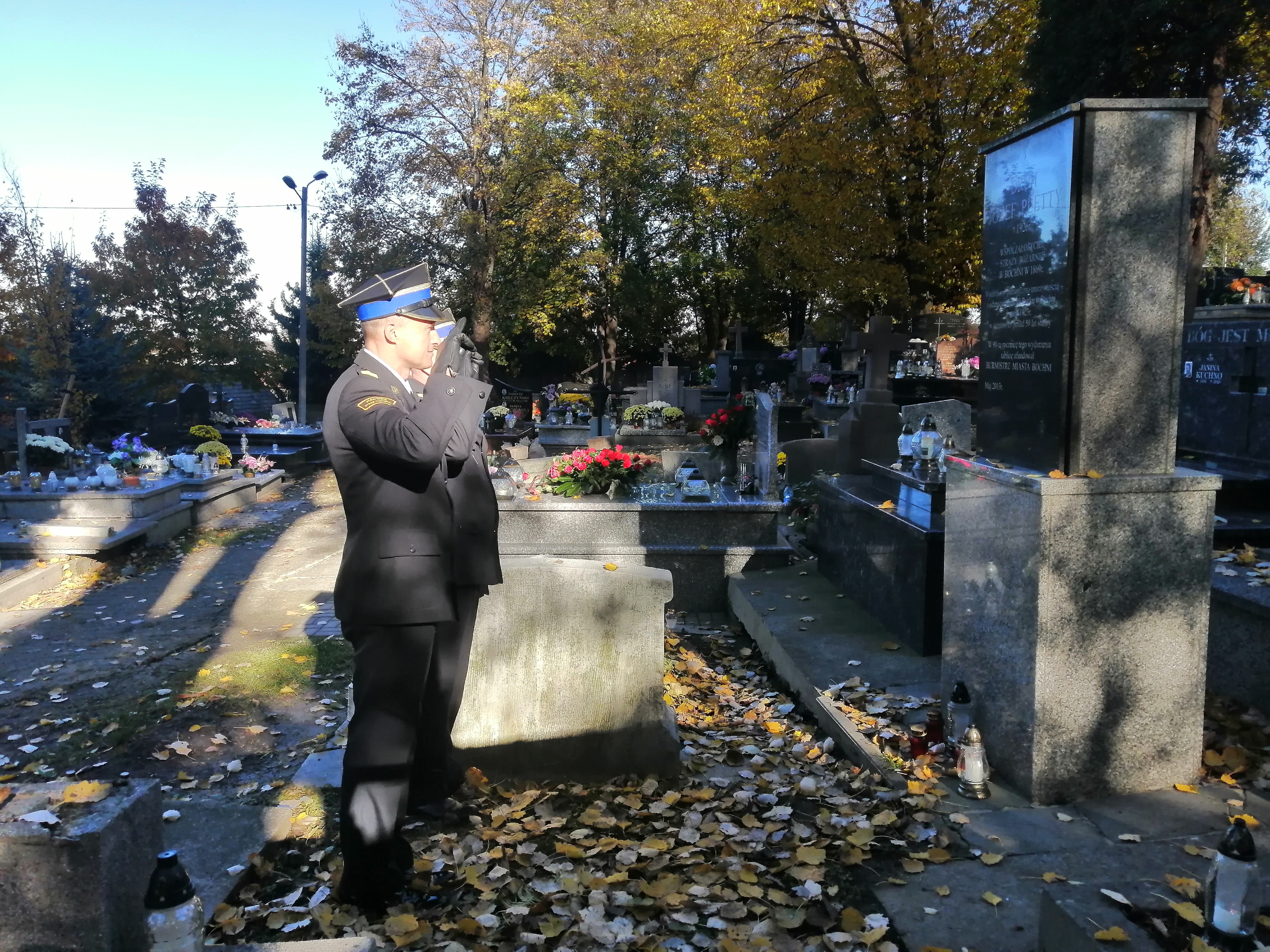 W hołdzie strażakom, którzy odeszli na wieczną służbę w Dzień Zaduszny 2 listopada 2023 r. Komendant Powiatowy Państwowej Straży Pożarnej w Bochni bryg. Jacek Ryncarz oraz Zastępca Komendanta Powiatowego Państwowej Straży Pożarnej w Bochni st. bryg. Piotr Gadowski zapalili znicze na grobach: druha Józefa Pletty, współzałożyciela Straży Pożarnej w Bochni w 1869 r.; druha Józefa Turka, współzałożyciela Straży Pożarnej w Bochni, wieloletniego Burmistrza Miasta Bochni; druha Jana Kuca, sekretarza Zarządu Głównego Związku Straży Pożarnych RP, V-ce Prezesa Zarządu Wojewódzkiego Związku Straży Pożarnych woj. Krakowskiego, Naczelnika III Okręgu, nieetatowego Komendanta zawodowego Miejskiego Pogotowia Straży Pożarnej Miasta Bochni oraz st. kpt. Andrzeja Kęcika Dowódcy JRG, który zginął w 1993 r. Kierownictwo i funkcjonariusze Komendy Powiatowej Państwowej Straży Pożarnej w Bochni od wielu lat oddają hołd zmarłym strażakom, którzy w ponad 150- letniej jej historii zasłużyli się dla rozwoju ochrony przeciwpożarowej na terenie miasta Bochni, regionu i kraju.